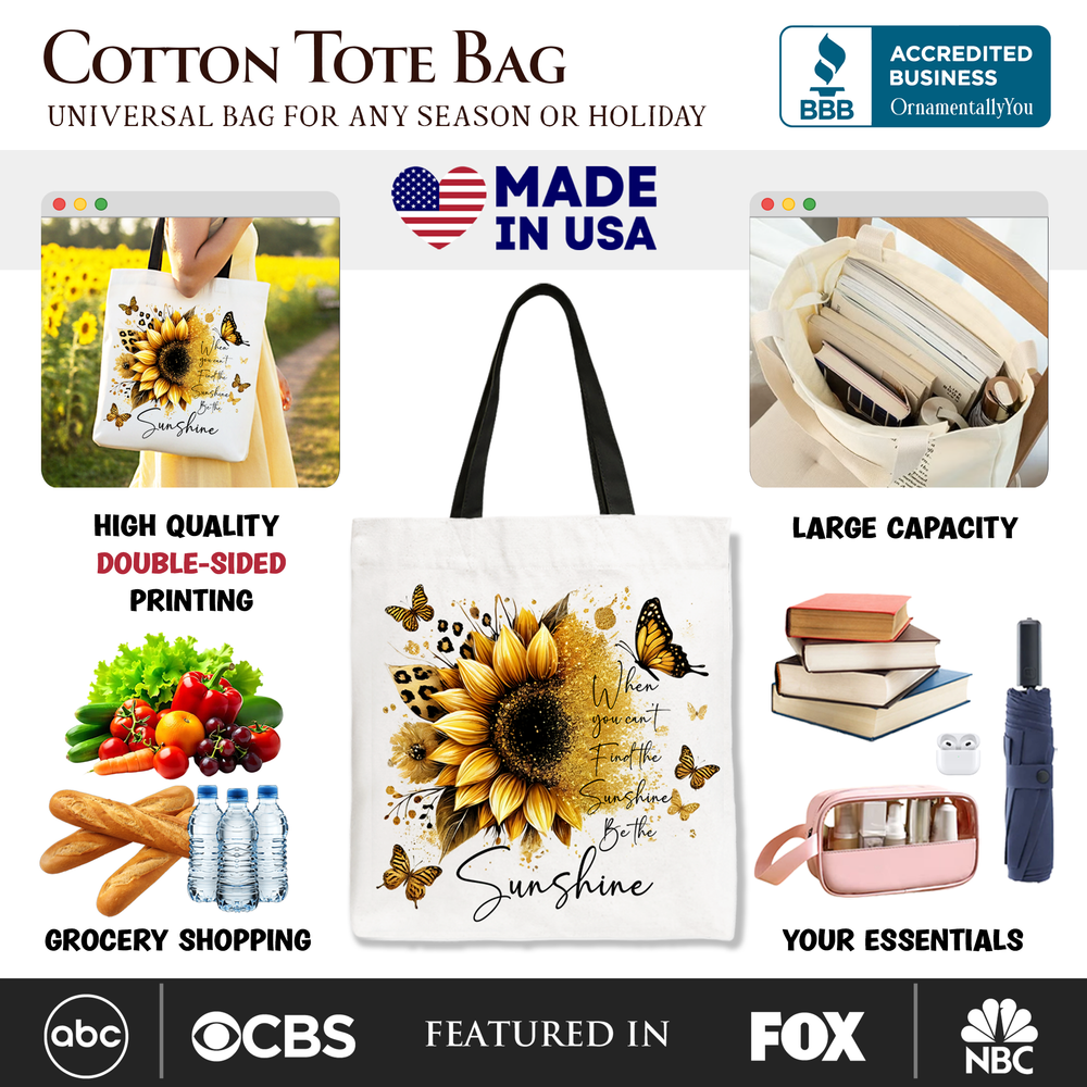 Sunflower Inspirational Quote Canvas Tote Bag, When You Can’t Find the Sunshine Be the Sunshine Gift Shopper