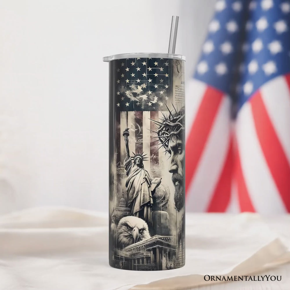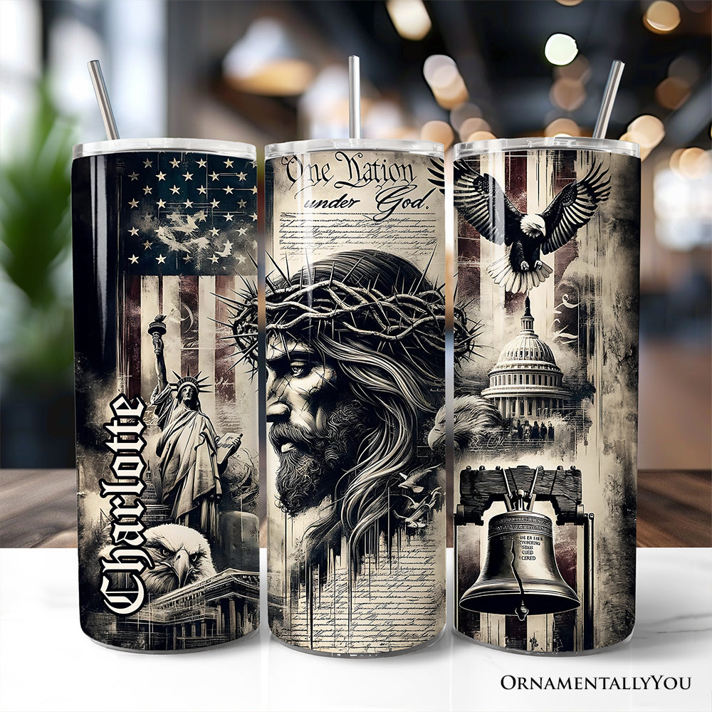 Patriotic Christian 20oz Personalized Tumbler With Lid and Stainless Steel Straw, One Nation Under God Gift Cup