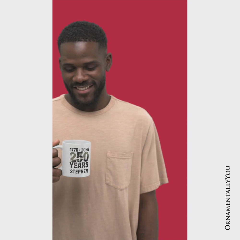 America 250 Years of Freedom Anniversary Personalized Mug, 4th of July USA Patriotic 1776–2026 Gift with Custom Name