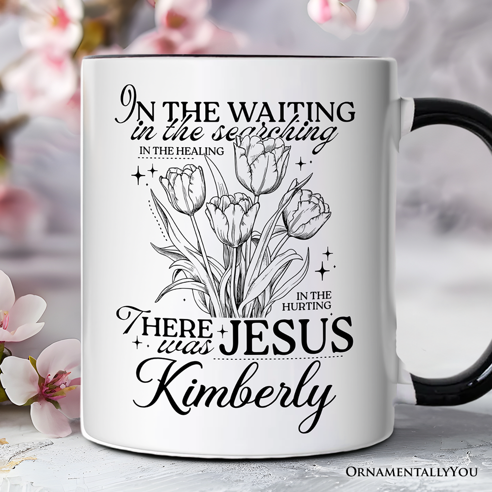 In the Waiting There Was Jesus Personalized Mug, Christian Faith Floral Inspirational Gift with Custom Name