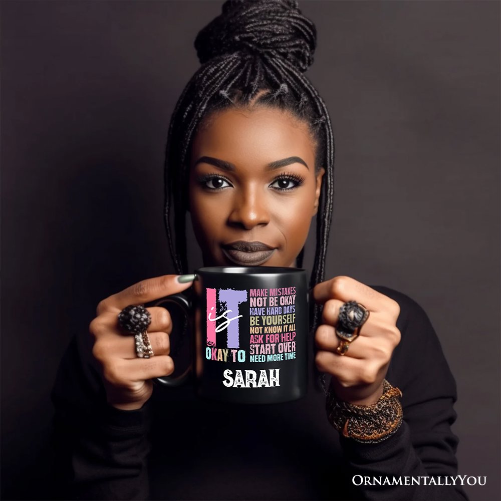 It's Okay To Mental Health Personalized Mug, Inspirational Self-Care Gift with Custom Name and Positive Affirmations Personalized Ceramic Mug OrnamentallyYou Black Customized