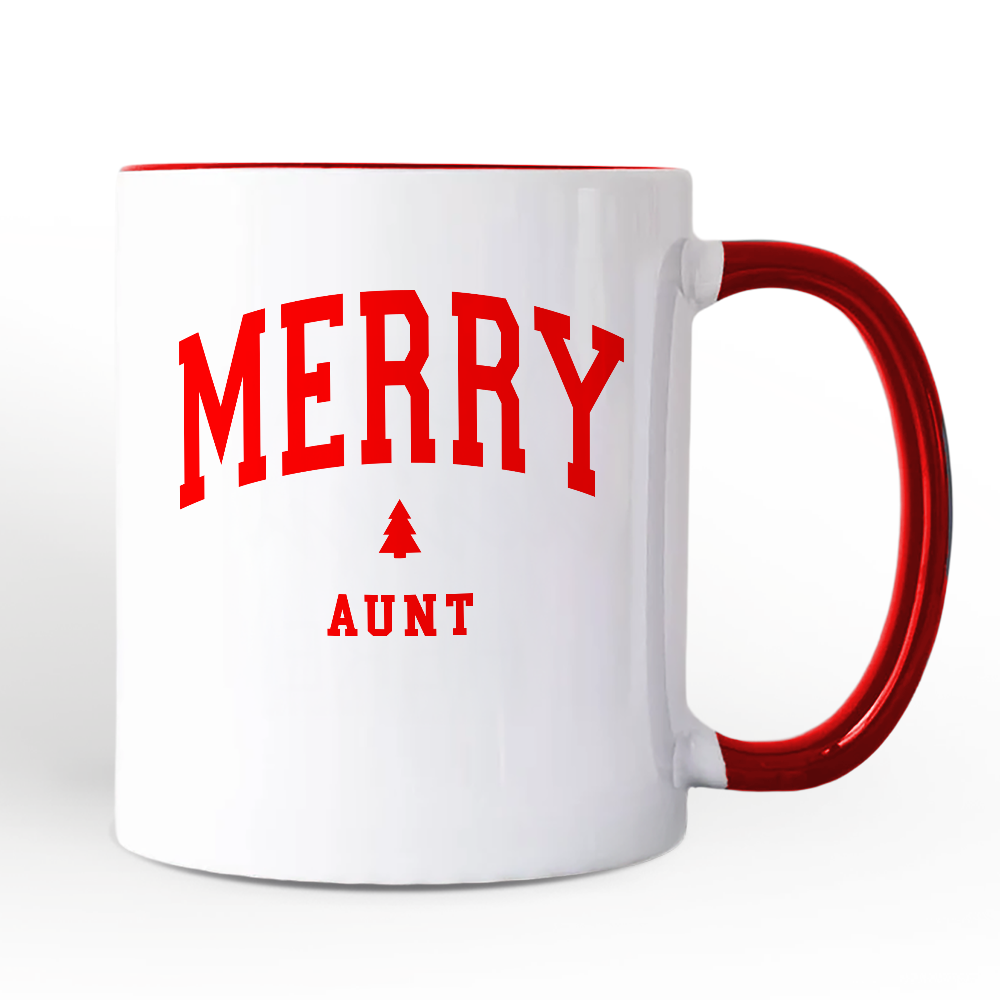 Merry Aunt Retro Christmas Personalized Mug, Matching Family Holiday Gift with Custom Name