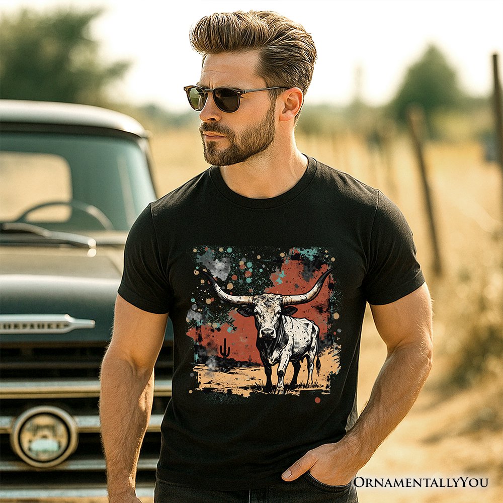 This western graphic t-shirt features a bold longhorn bull design inspired by classic cowboy culture and rugged rodeo style 🐂🤠. Made for western wear enthusiasts, this unisex tee is perfect for country life, ranch vibes, and everyday casual outfits. The detailed longhorn artwork captures the spirit of the American West, making it a standout choice for rodeo fans, cowboys, cowgirls, and lovers of rustic southwestern fashion 🌵🔥. Ideal for pairing with jeans or boots, this comfortable western tee is a must-have for anyone drawn to authentic cowboy apparel and western graphic shirts.