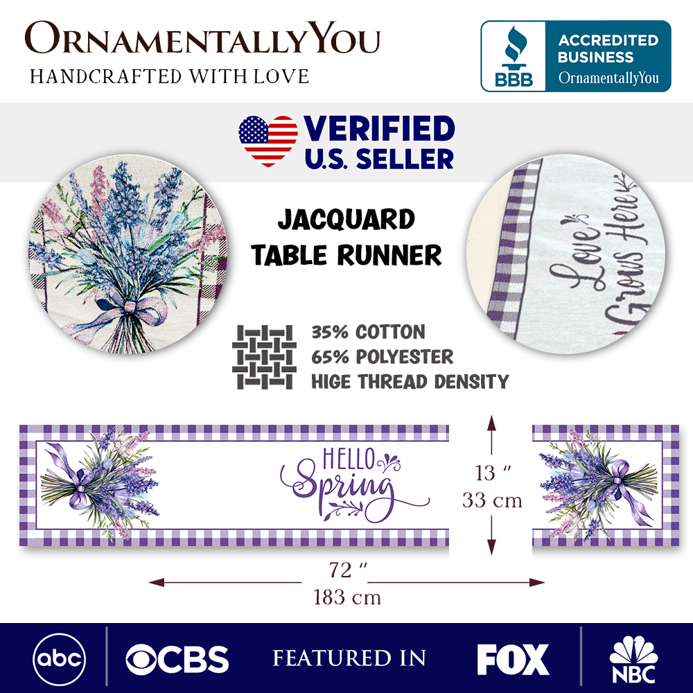 Lavender Floral 72" Jacquard Table Runner, High Quality Farmhouse Rectangle Tablecloth with Purple Flower Bouquet