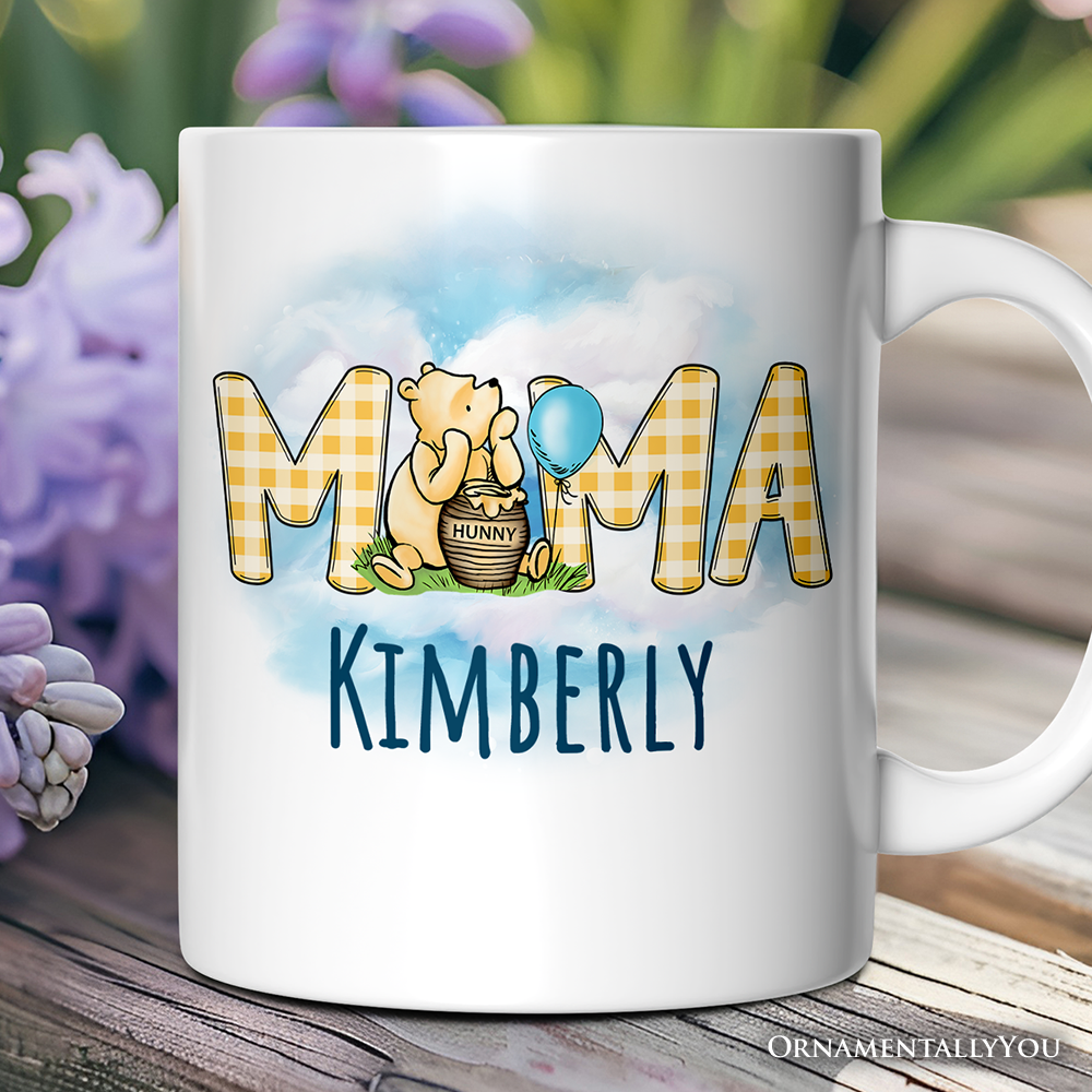 Gingham Bear Mama Personalized Mug, Honey Bear Family Gift with Custom Name