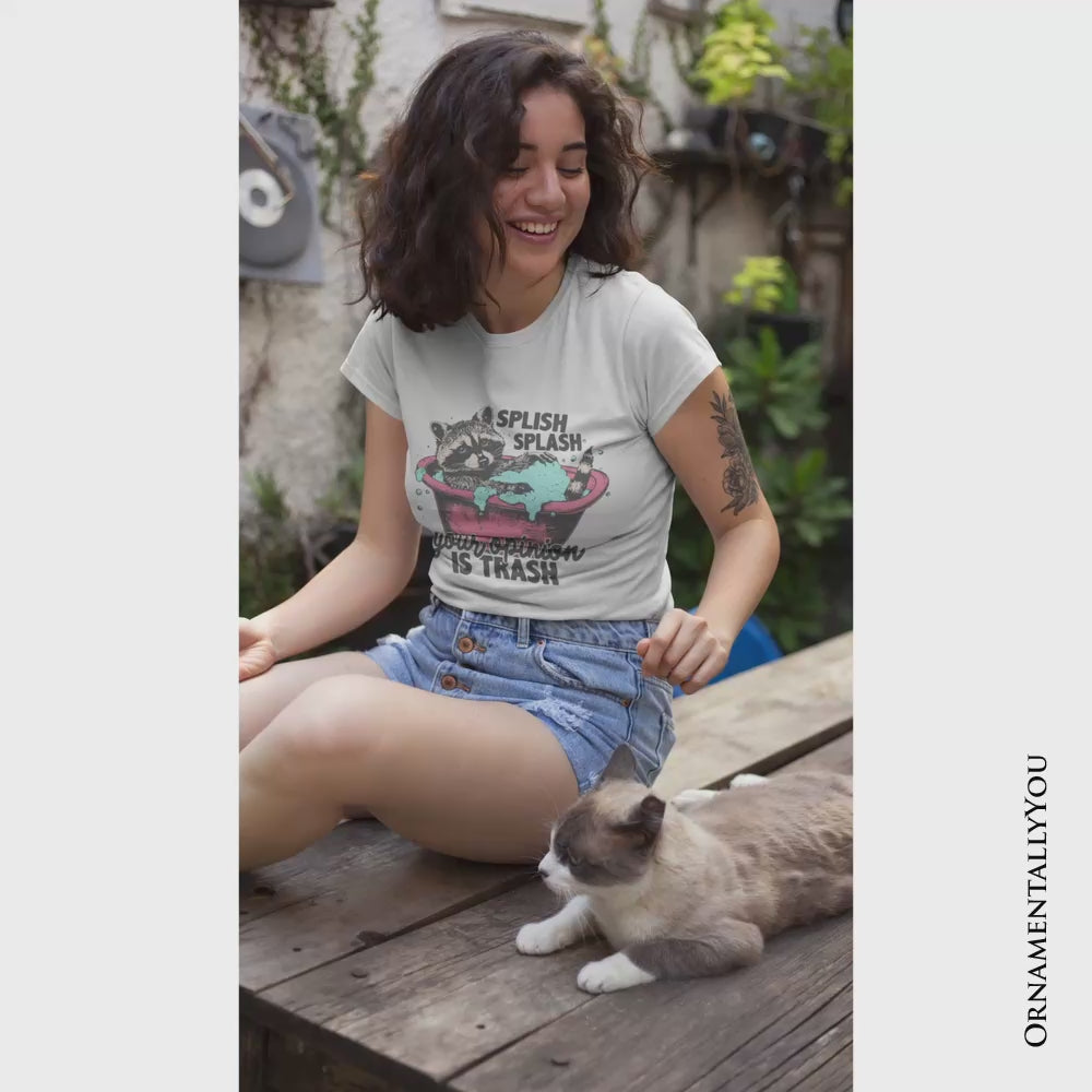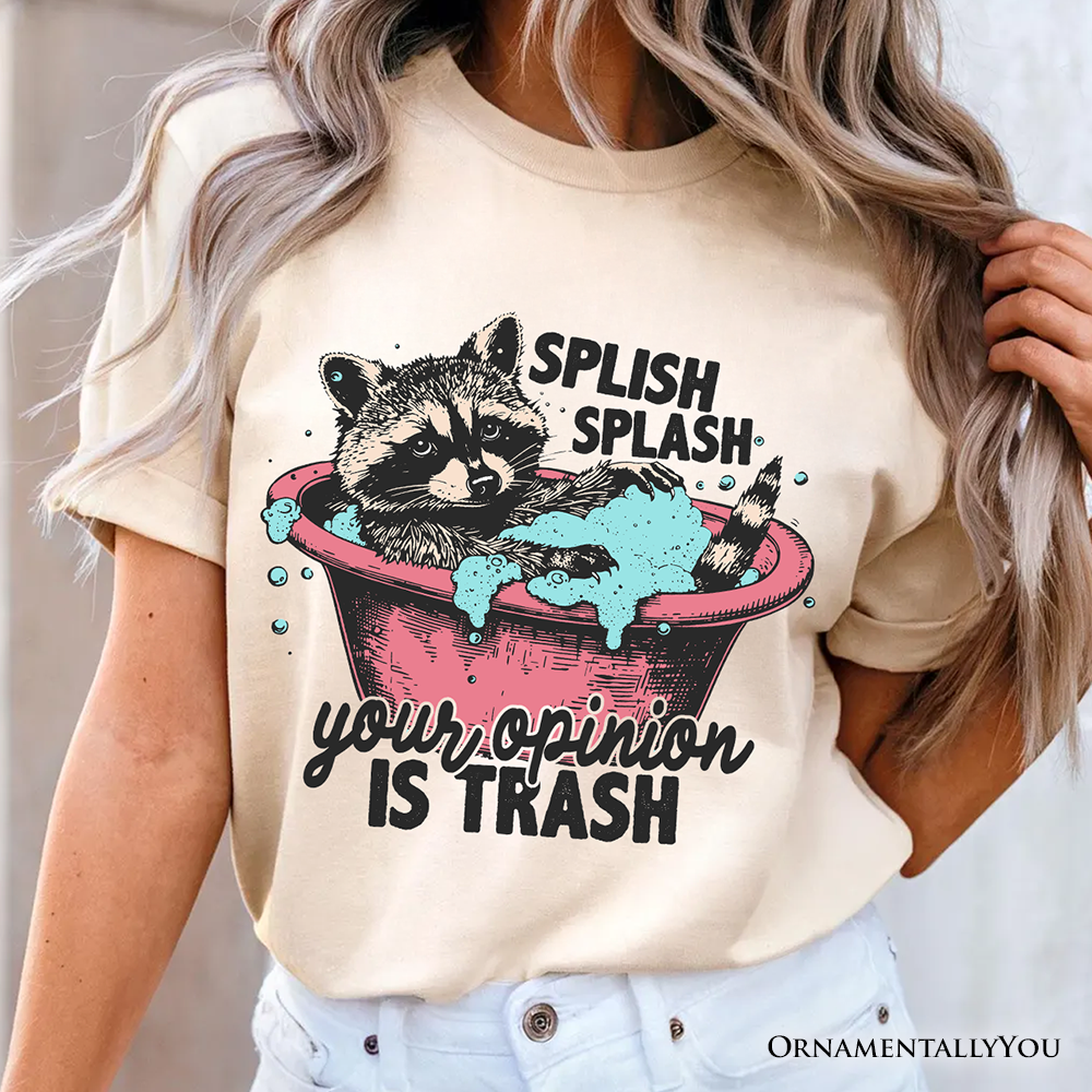 Splish Splash Your Opinion Is Trash Raccoon T-Shirt, Humor Vintage Meme Tee