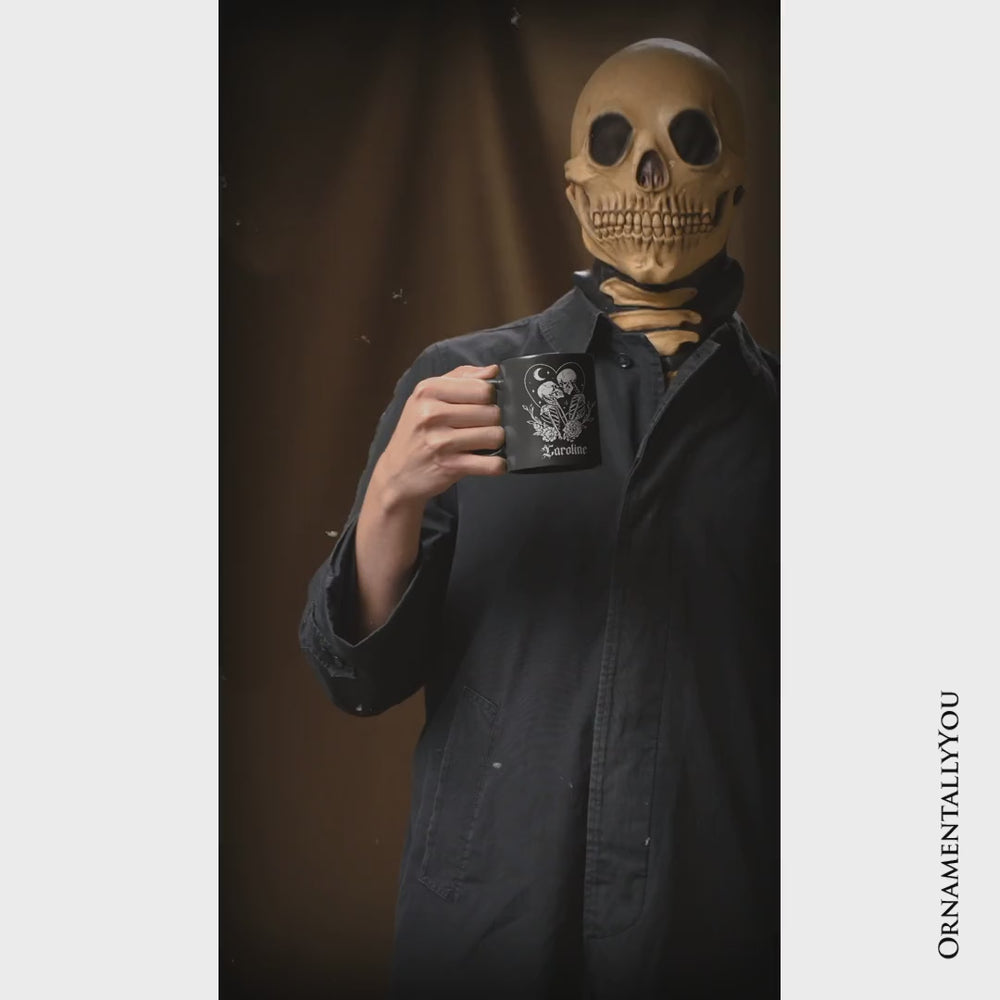The Lovers Skeletons Personalized Mug, Spooky Gothic Couple Gift with Custom Name