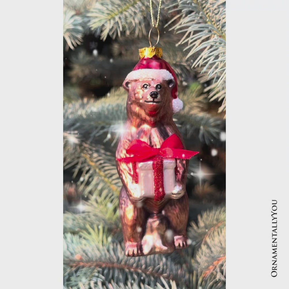 Enchanting Hare and Sleigh Glass Christmas Ornament, Elegant Hand Blown Tree Decor