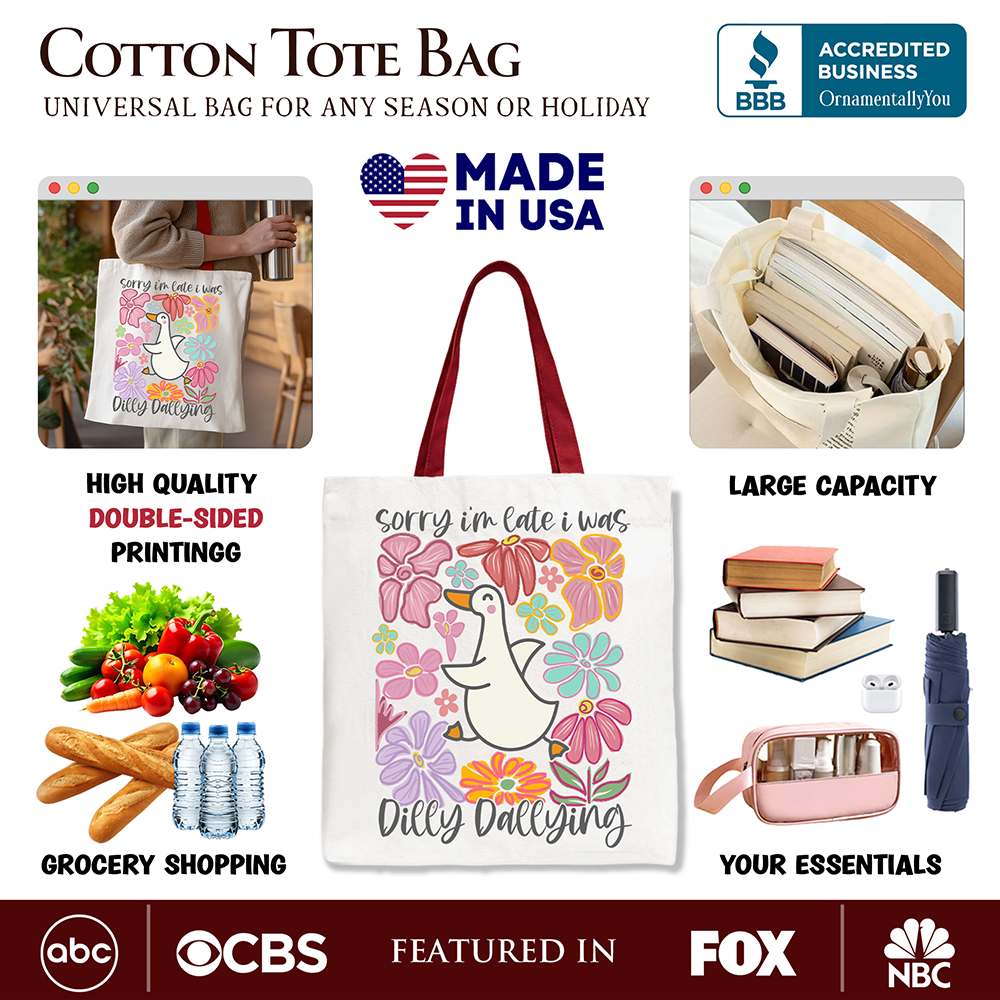 Sorry I'm Late I Was Dilly Dallying Goose Canvas Tote Bag, Cute Flowers Women Gift
