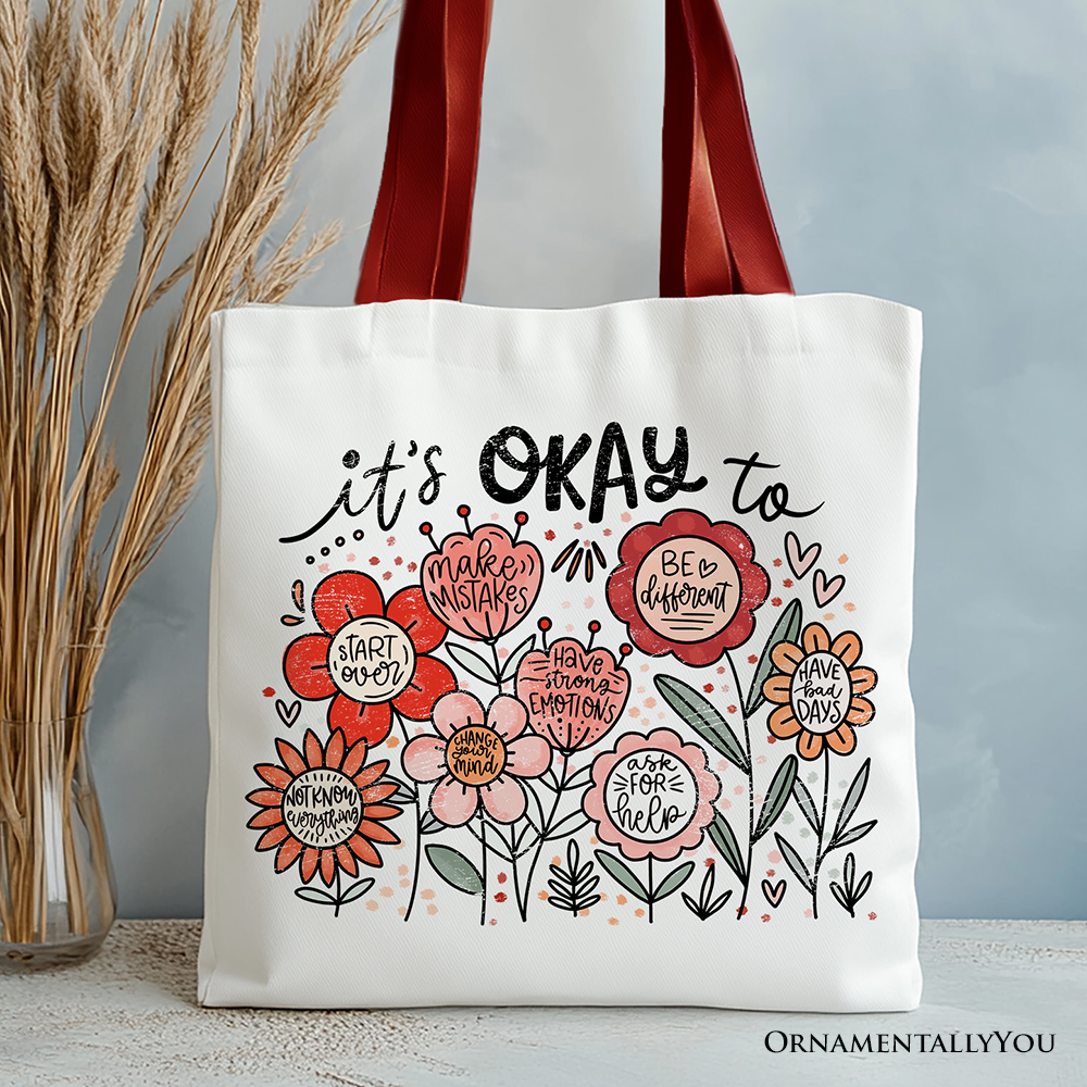 It's Okay Floral Affirmation Canvas Tote Bag, Boho Motivational Gift for Kind and Inspirational Women
