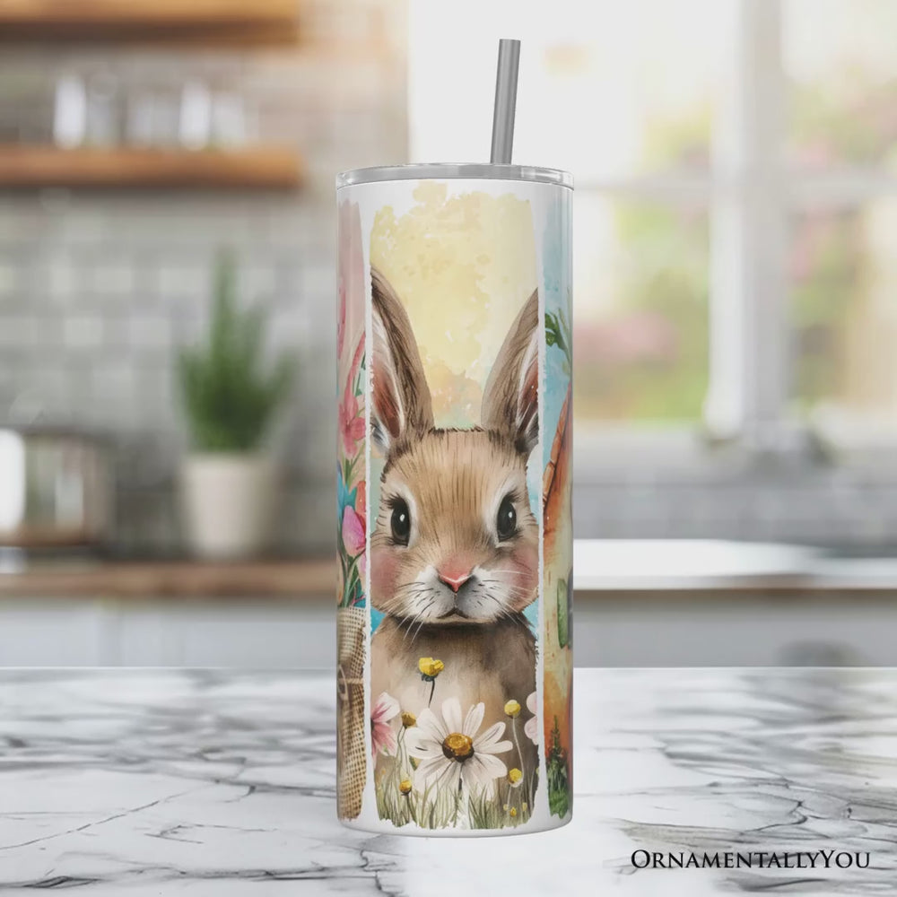 Easter Bunny Floral Brushstroke 20oz Personalized Tumbler With Lid and Stainless Steel Straw, Spring Pastel Coquette Travel Mug Gift