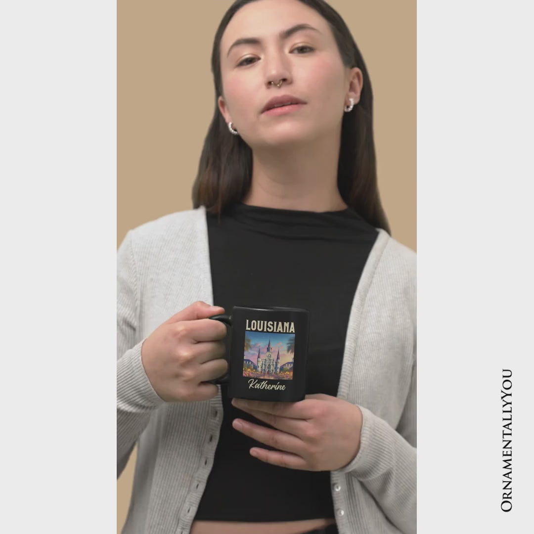 Artistic Louisiana State Cathedral Personalized Mug, St. Louis Landmark Gift and Holiday Keepsake Souvenir with Custom Name