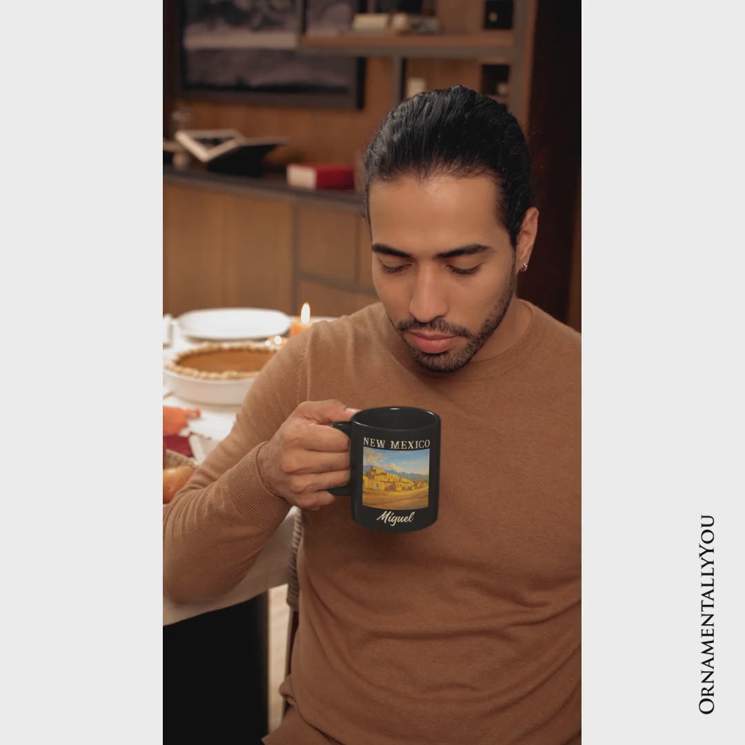 Artistic New Mexico State Taos Pueblo Personalized Mug, Native American Heritage Gift and Southwestern Cultural Souvenir with Custom Name