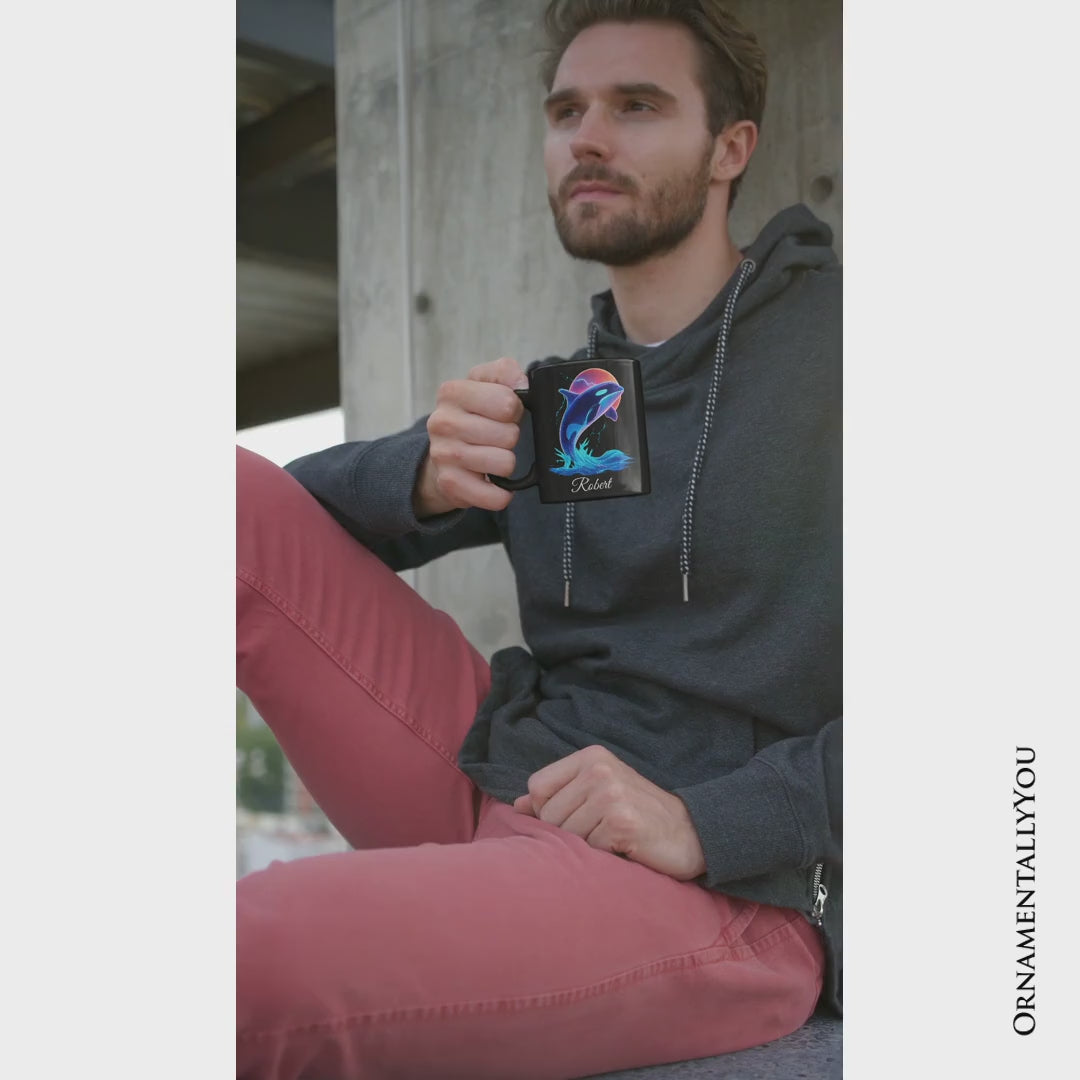 Dive into nostalgic vibes with this vibrant neon synthwave mug 🌅🐋—a mesmerizing fusion of ocean dreams and vaporwave art. Featuring a glowing orca silhouette under a radiant retro sunset, this custom name mug is perfect for coffee lovers, gamers, and fans of 80s aesthetics. ☕✨ Designed with bold colors and high-quality print, it makes an unforgettable gift for anyone who loves the electric pulse of synthwave style and ocean-inspired art. Personalize it with your name for a truly unique touch! 🌊💖