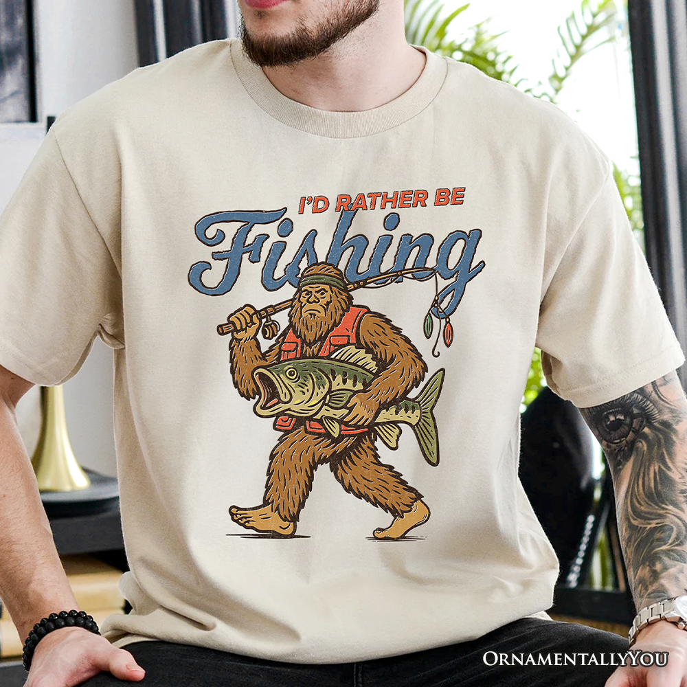 I’d Rather Be Fishing Bigfoot T-Shirt, Funny Sasquatch Fishermen Tee