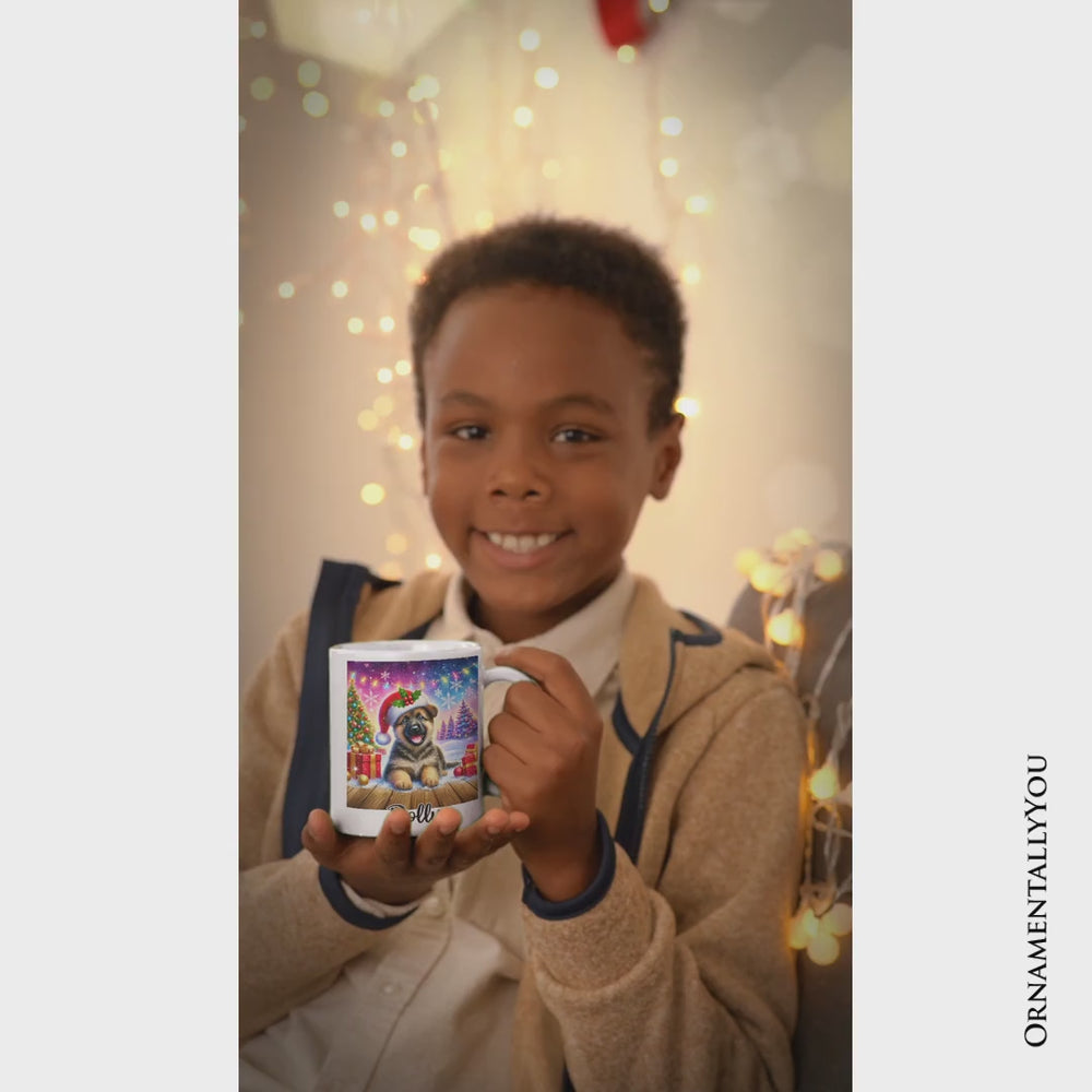 Snowy German Shepherd Puppy Personalized Mug, Heartwarming Christmas Gift with Custom Name
