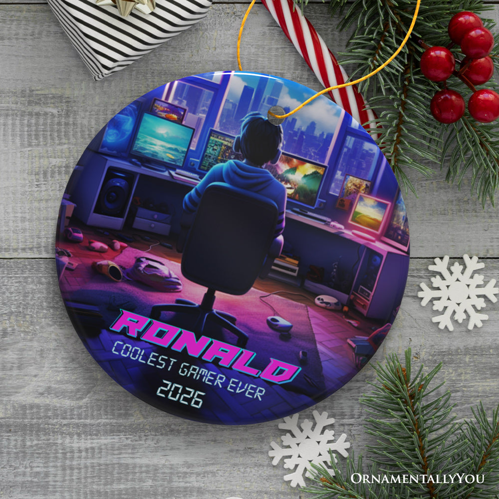 Personalized Video Gamer Christmas Tree Ornament, Gaming Boy Gift