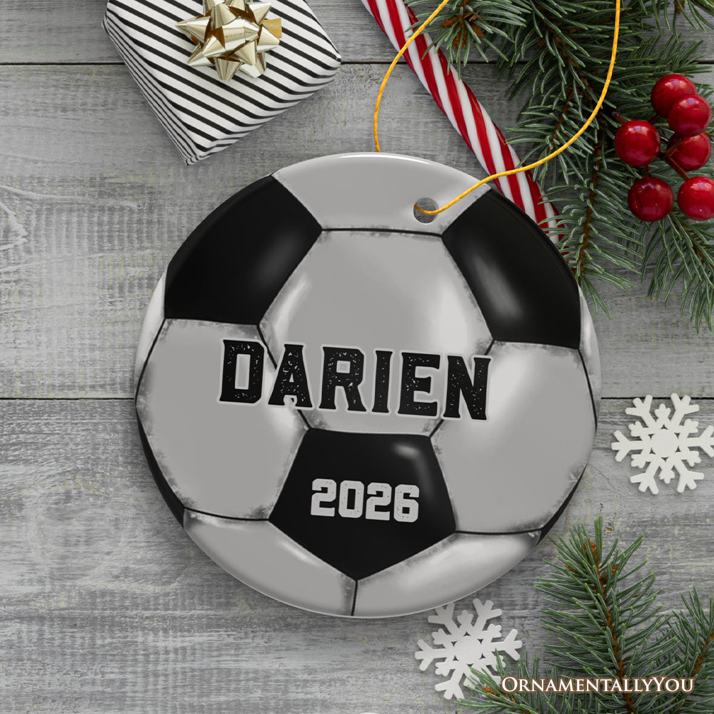 Personalized Soccer Christmas Ornament, Festive Holiday Theme with Name and Date