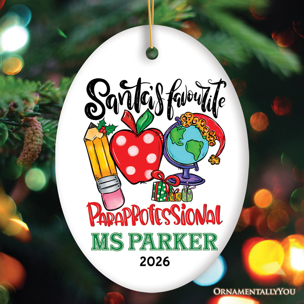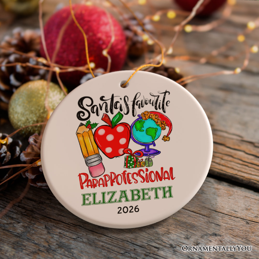 Festive Santaโs Favorite Paraprofessional Personalized Christmas Ornament, Custom Educational Assistant Gift