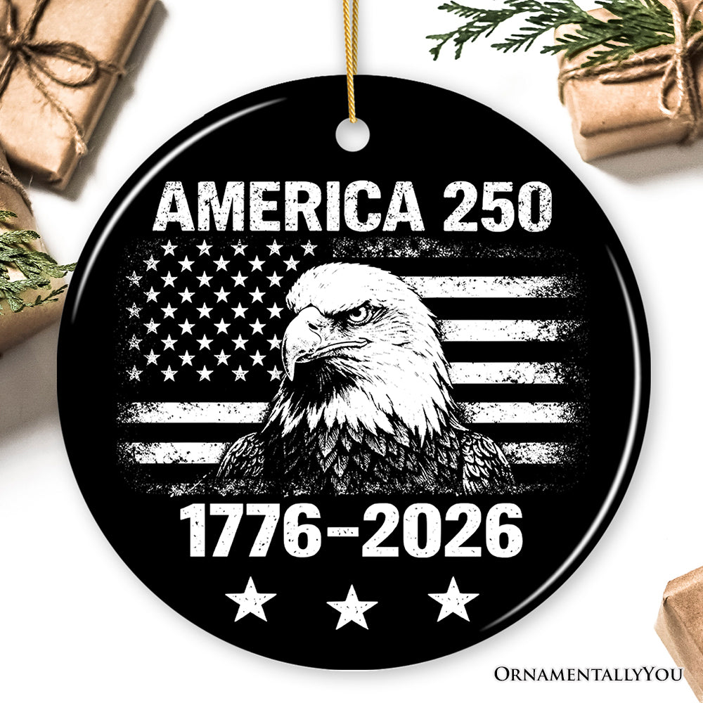 America 250 Years of Freedom Ornament, Patriotic USA Anniversary 1776-2026 Gift and Tree Decor