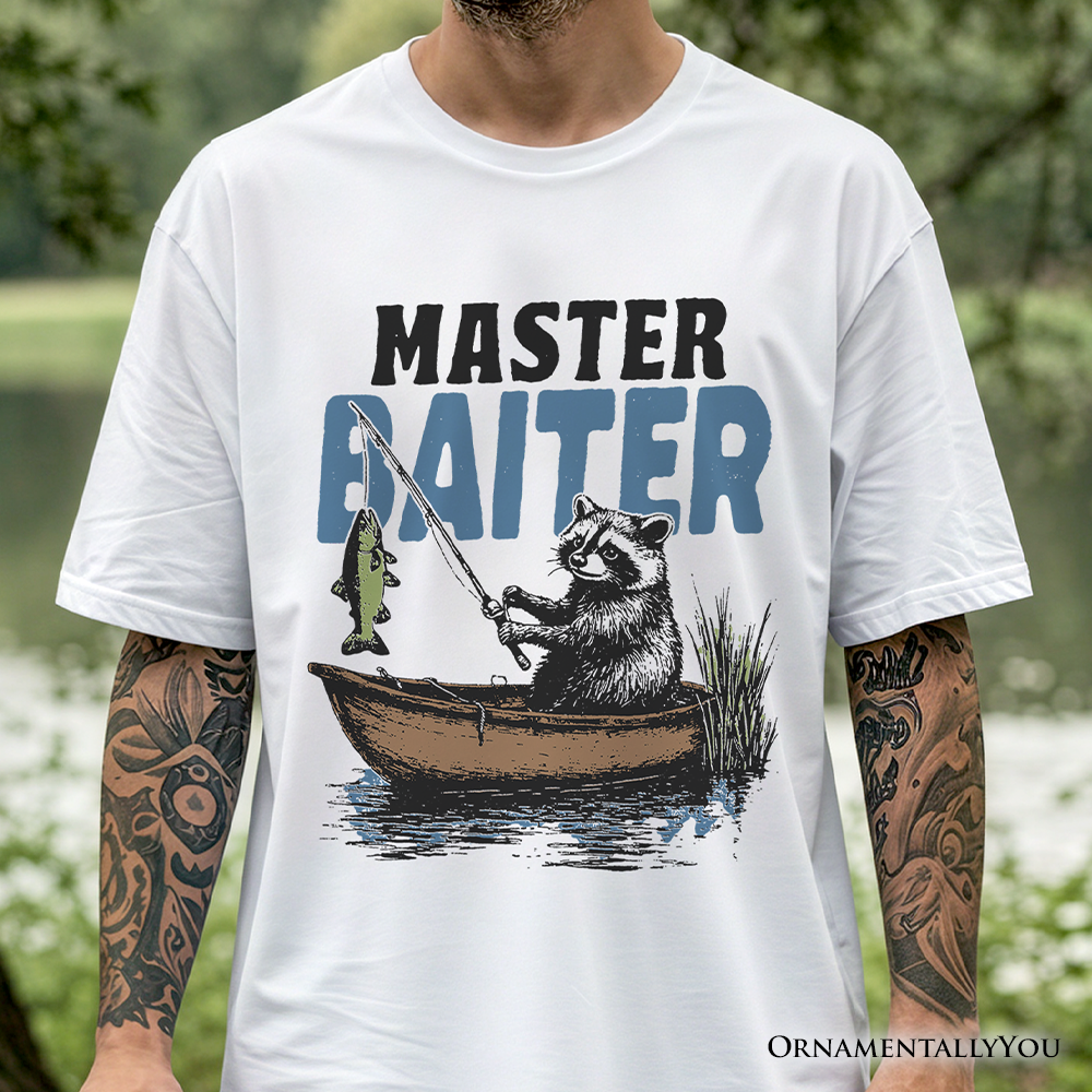 Master Baiter Fishing T-Shirt, Funny Raccoon Father Vintage Tee