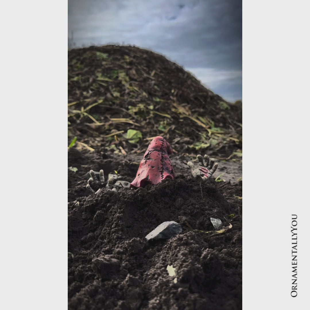 Elevate your Halloween decor with the delightfully eerie Zombie Gnome Garden Statue. Standing 8 inches tall, this striking outdoor figurine is the perfect blend of spooky and whimsical, ready to bring a touch of the macabre to your garden.