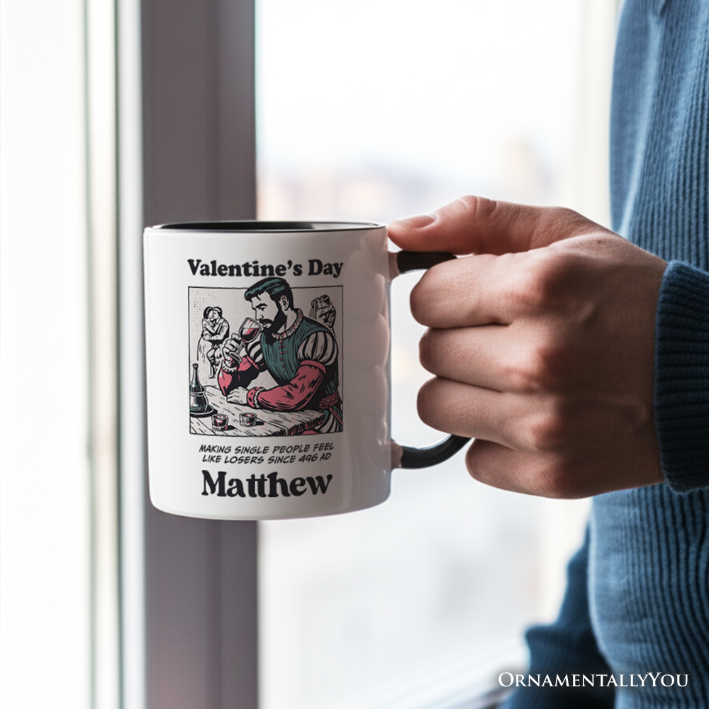 Single People Comic Loser Valentine Personalized Mug, Funny Anti-Valentine Gift with Custom Name
