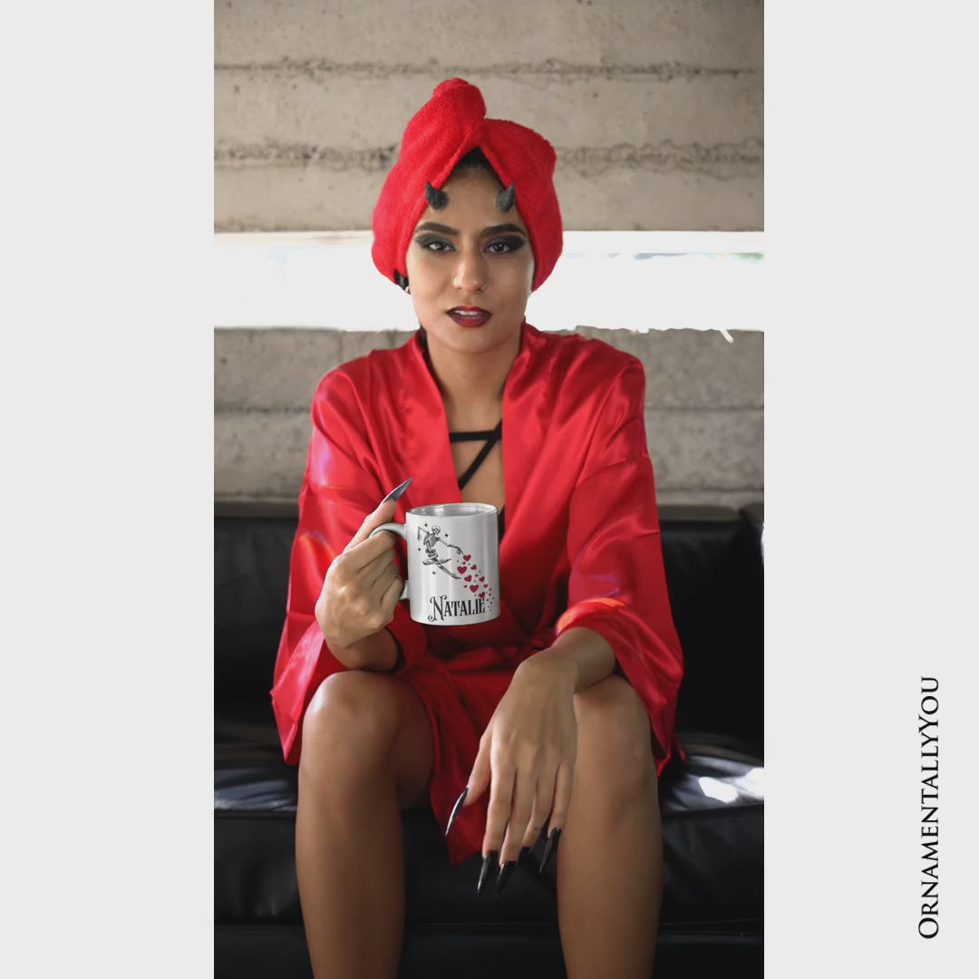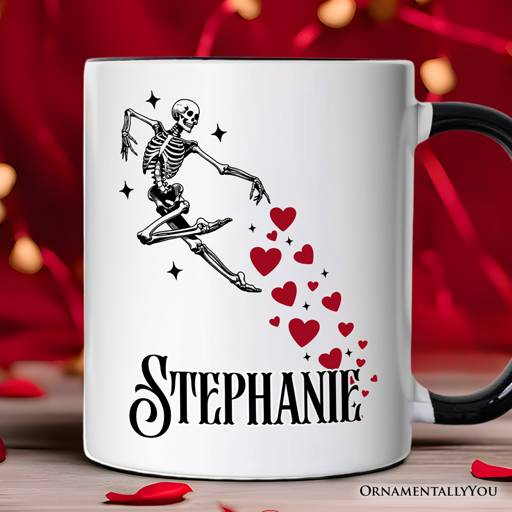 Skeleton Hearts Valentine Personalized Mug, Playful Funny Gift with Custom Name