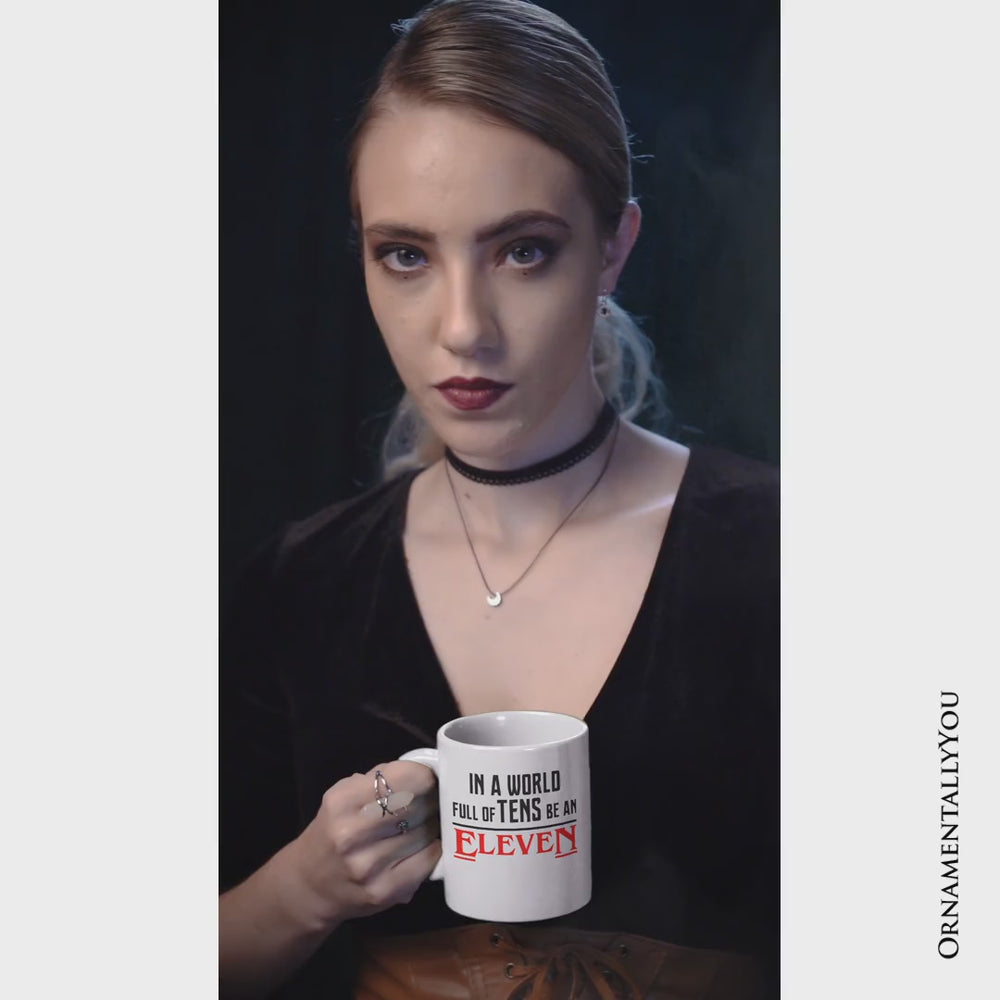 In a World Full of Tens be an Eleven Personalized Mug, Inspirational Vintage Horror Gift with Custom Name