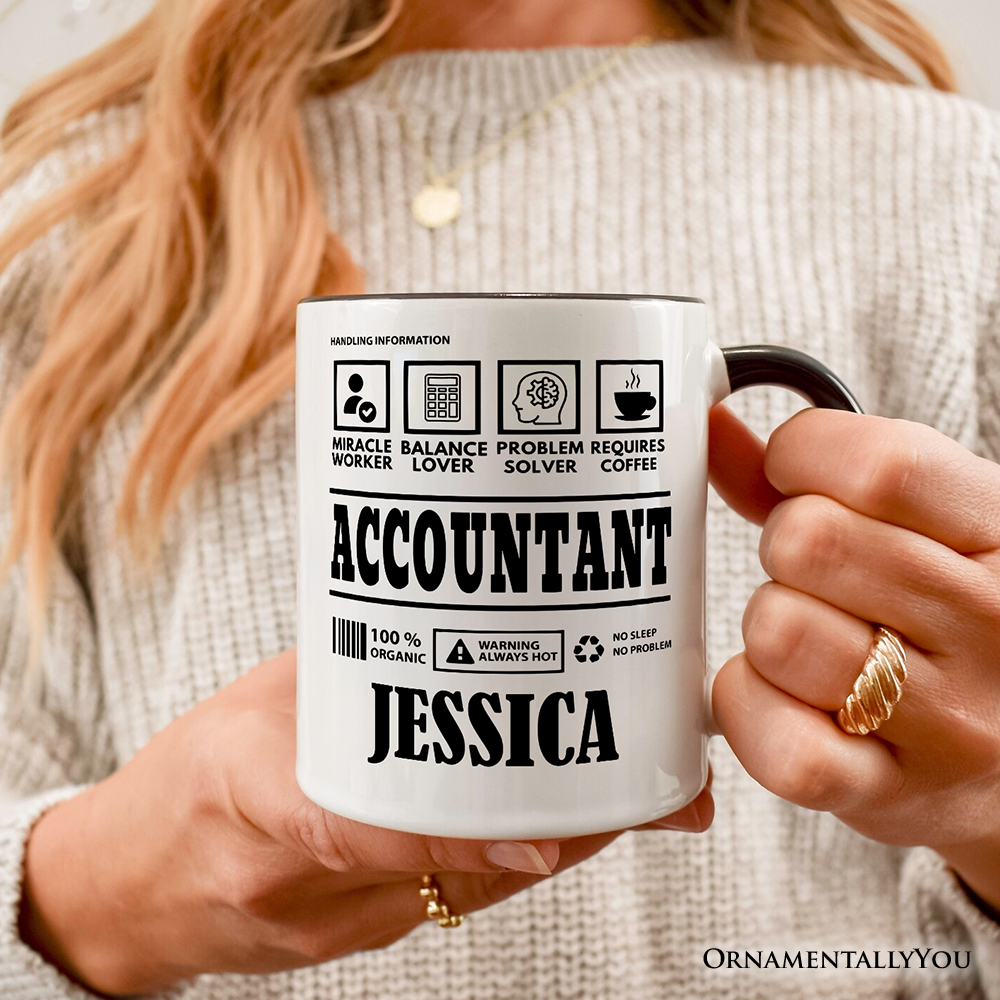Start the day with a smile and a fresh cup of coffee using this personalized ceramic mug designed especially for accountants and bookkeeping professionals who love a touch of humor at work or home. Featuring a fun “nutrition facts” style graphic and custom name option, this high-quality ceramic coffee mug makes a perfect accountant gift, bookkeeper appreciation present, office desk mug, or funny workplace gift for CPA colleagues, finance graduates, or tax season survivors. Durable, easy to clean, and ideal for daily coffee, tea, or hot chocolate, this custom name mug adds personality to any workspace while making a thoughtful birthday, holiday, or employee recognition gift. ☕📊🎁