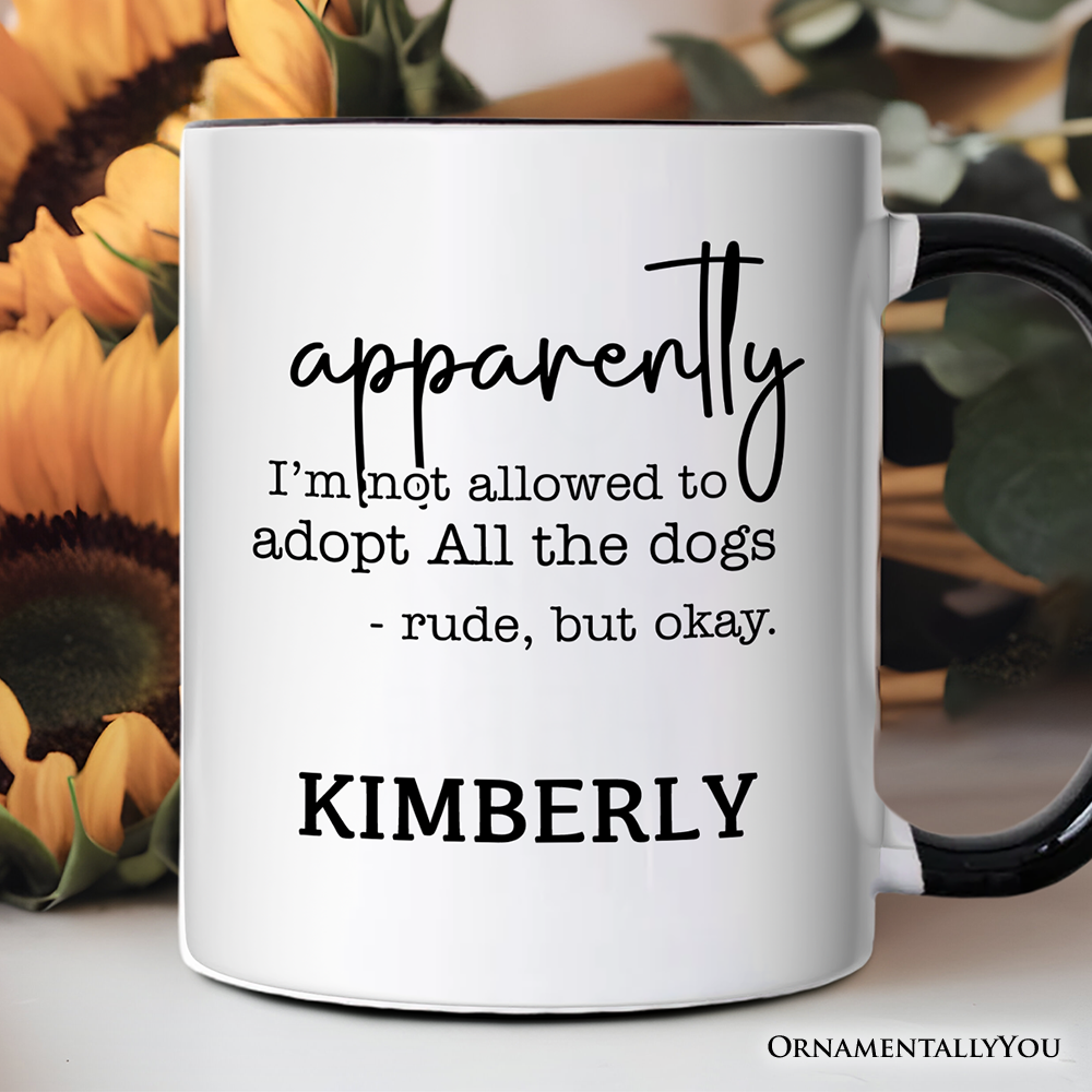 Apparently Iโm Not Allowed to Adopt All the Dogs Personalized Mug, Funny Pet Quote Gift with Custom Name