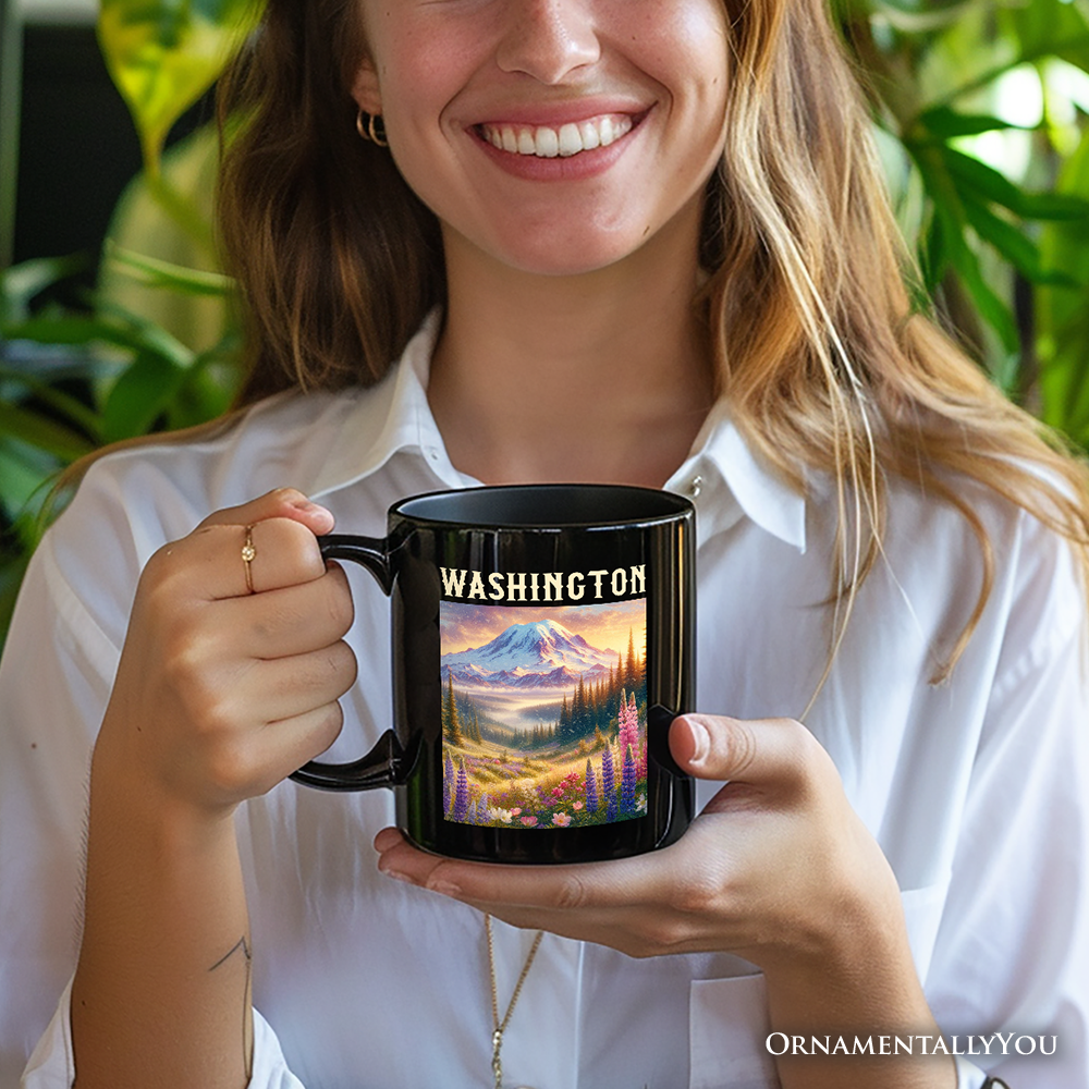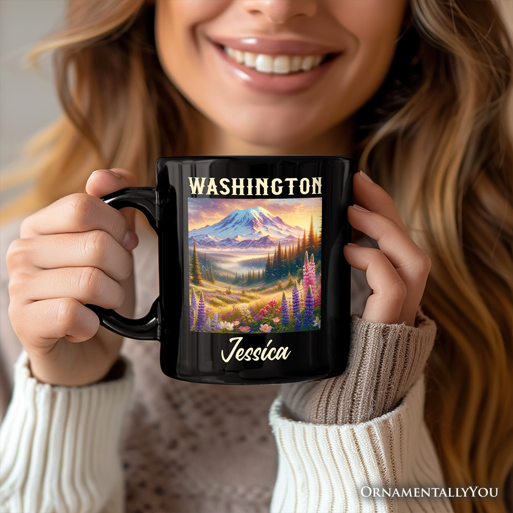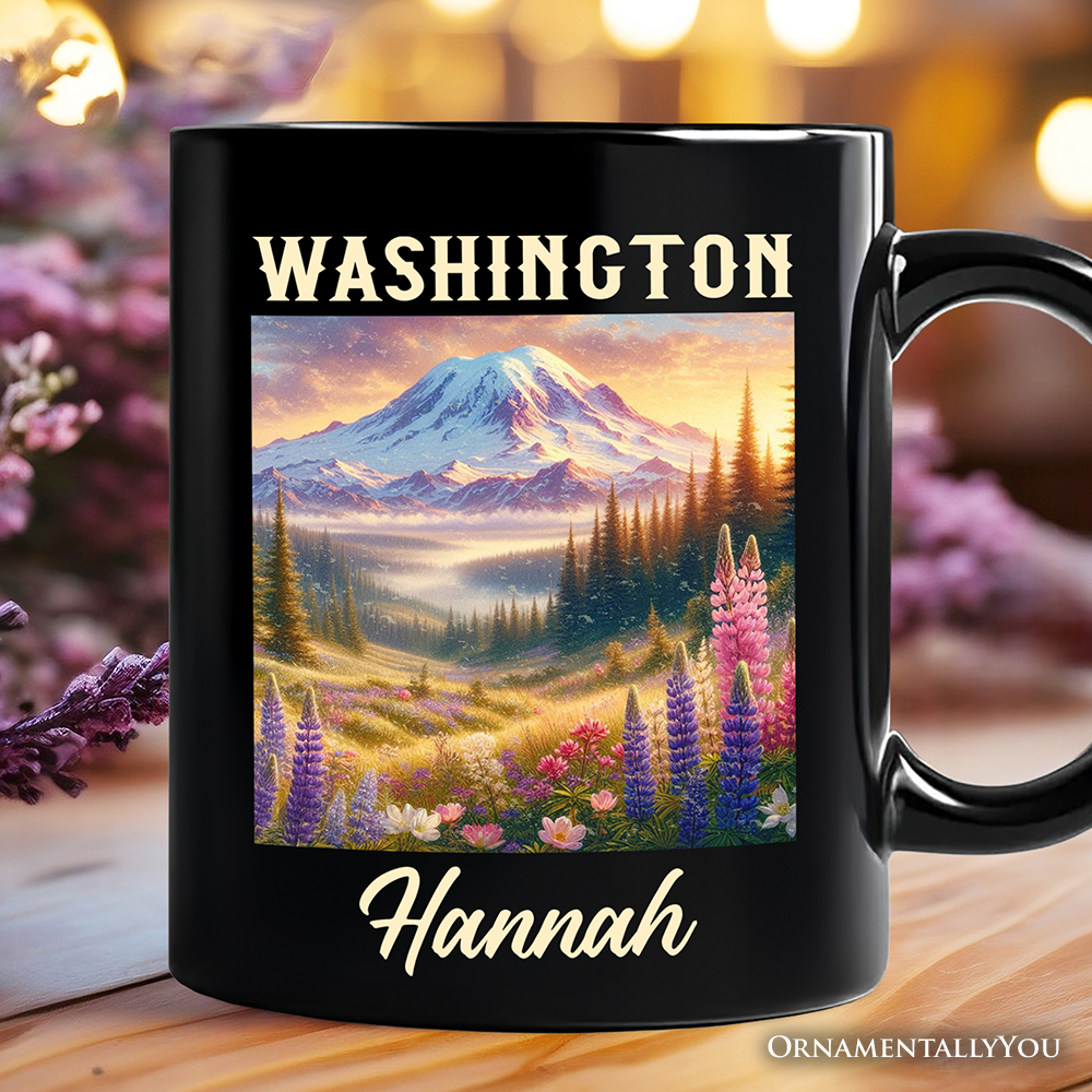 Artistic Mount Rainier Washington State Personalized Mug, National Park Gift and Pacific Northwest Souvenir with Custom Name