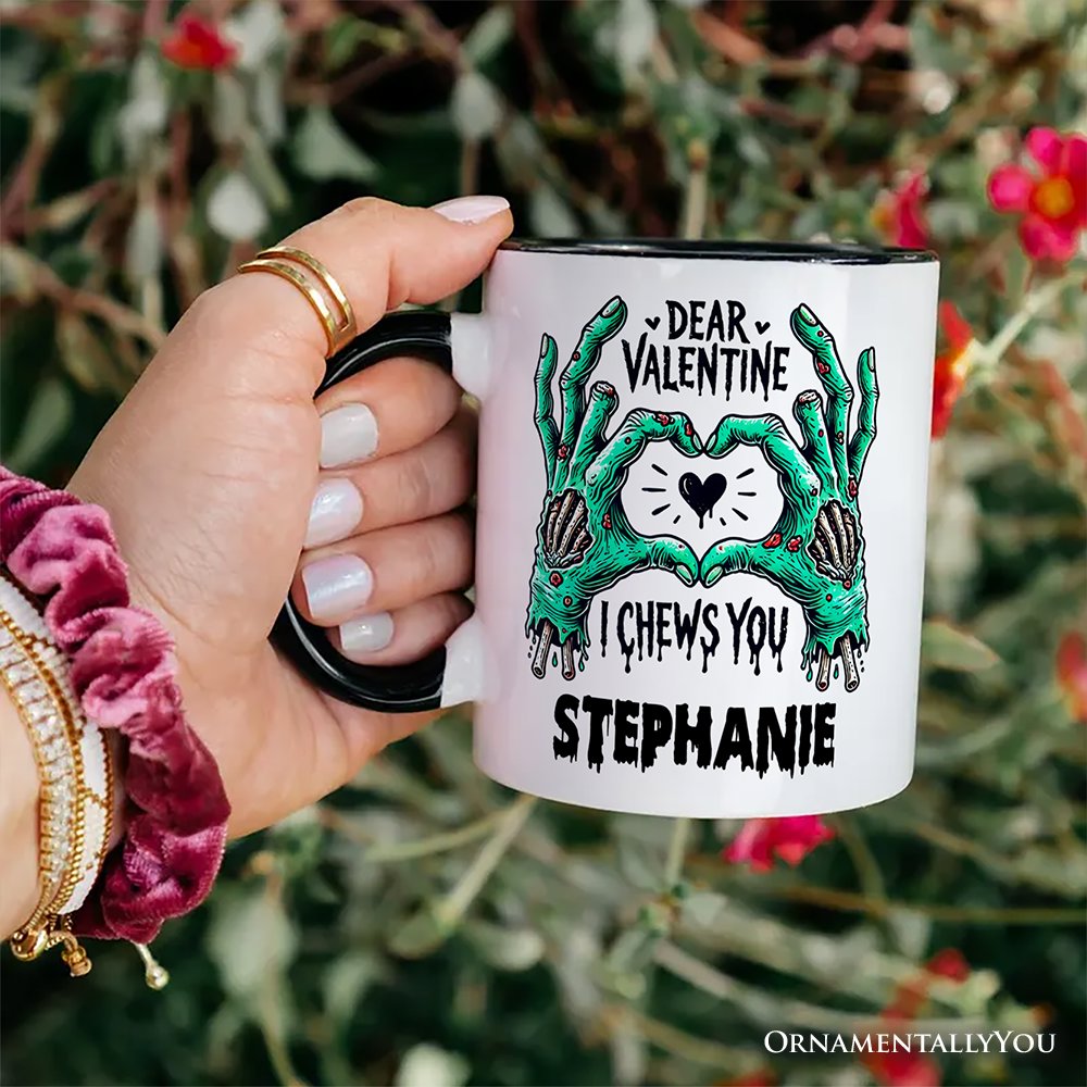 Zombie Valentine Hands I Chews You Personalized Mug, Funny Horror Spring Gift with Custom Name