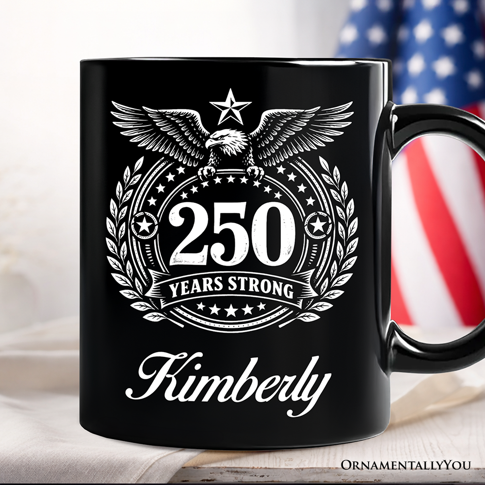 America 250 Years Strong Eagle Personalized Mug, 4th of July USA Patriotic 1776β2026 Gift with Custom Name