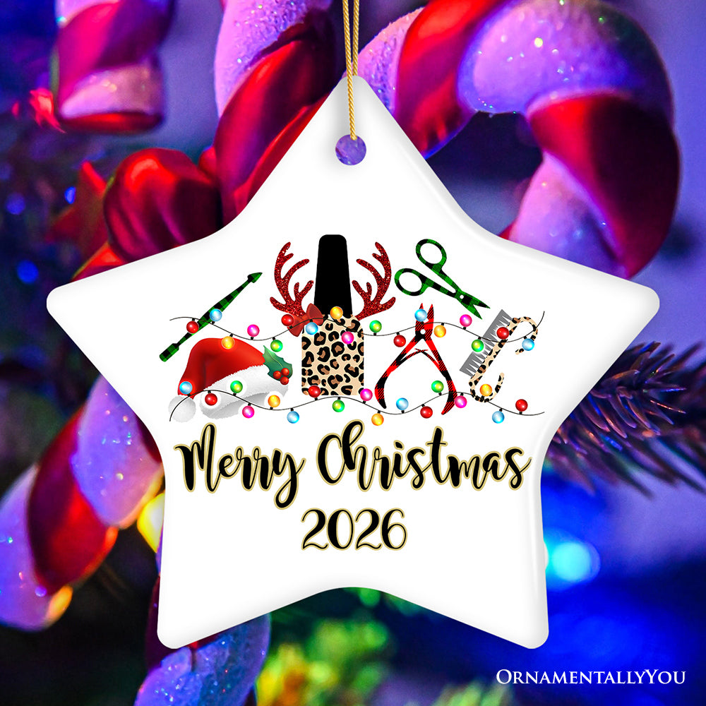 Personalized Nail Tech Buffalo Plaid Leopard Merry Christmas Ornament, Pedicure Gift