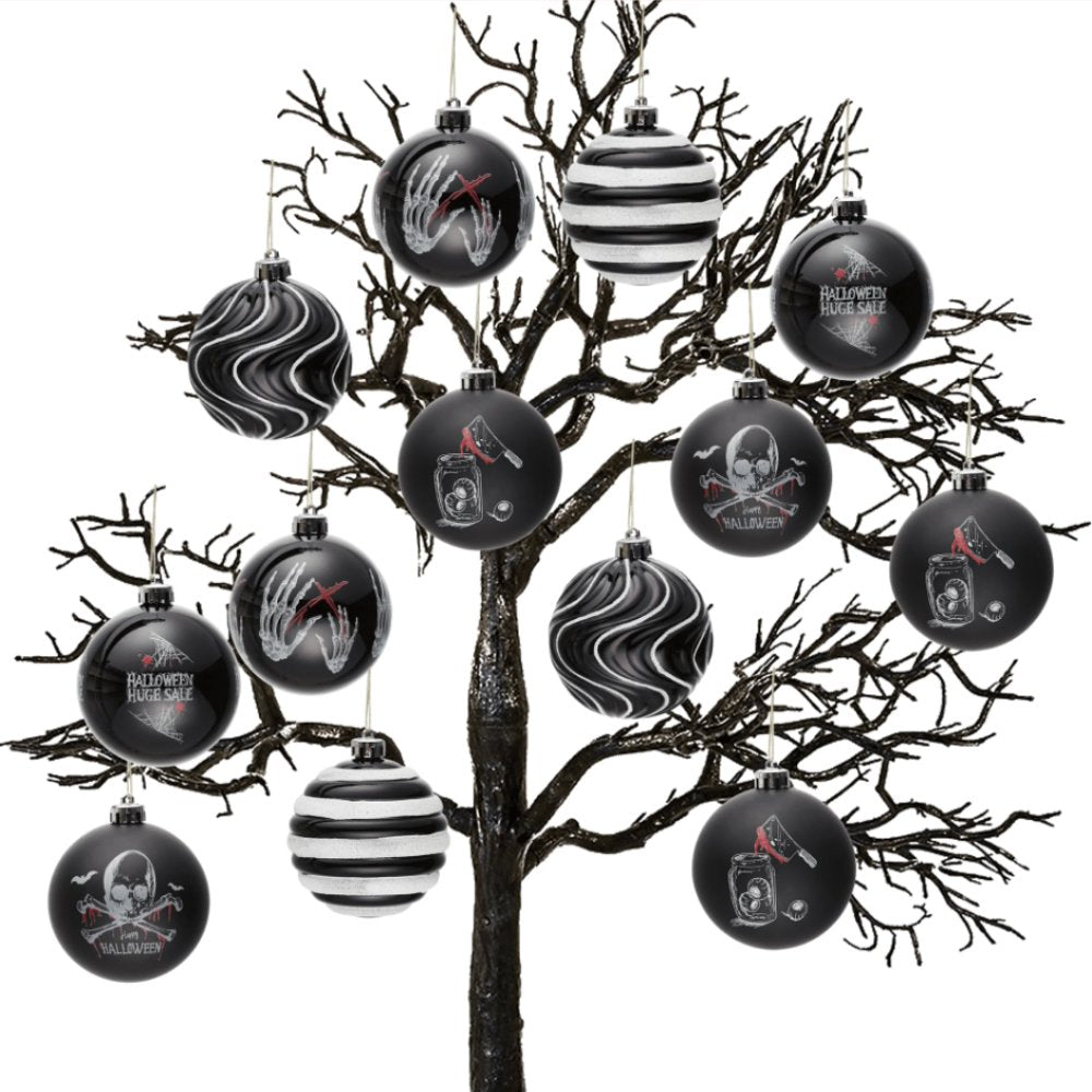 Sized at 8cm/3.15 inches, these ornaments are large enough to make a statement yet lightweight for easy decorating. Whether you’re building a Halloween tree, haunted house display, gothic-themed Christmas tree, or spooky party décor, this set offers just the right mix of eerie and stylish.