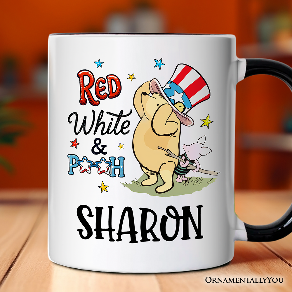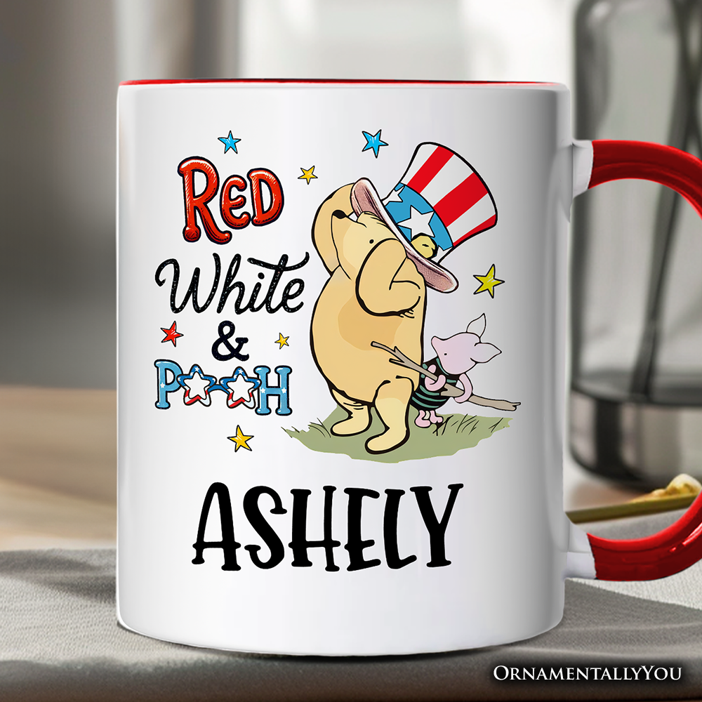 Patriotic 4th of July Winnie-the-Pooh Personalized Mug, 1926 A.A. Milne Red White & Proud Gift with Custom Name