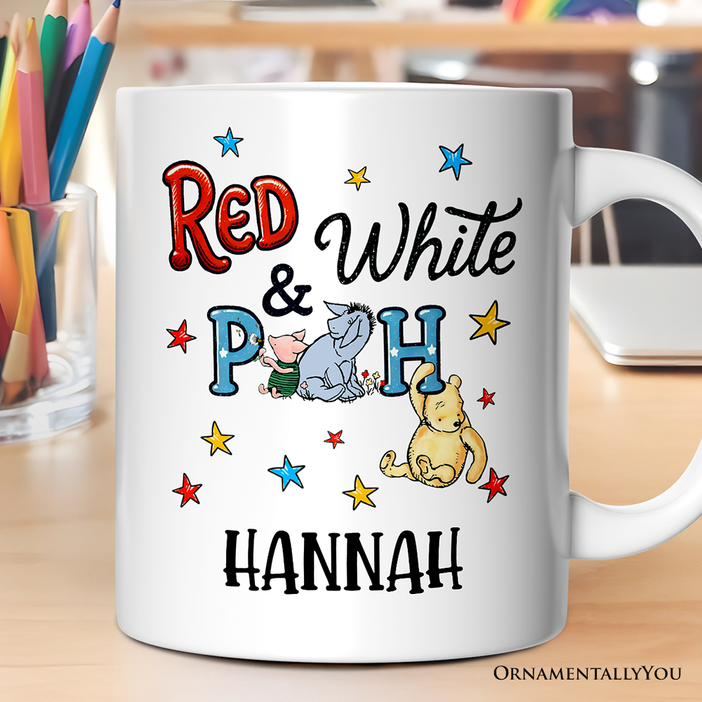 Patriotic Red White & Proud Winnie-the-Pooh Personalized Mug, 1926 A.A. Milne 4th of July Gift with Custom Name