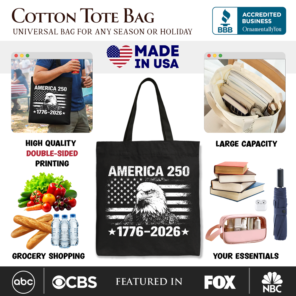 USA 250 Years Anniversary Tote Bag, 4th of July Patriotic 1776–2026 Gift Shopper