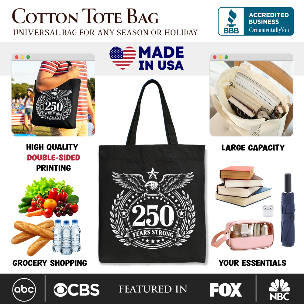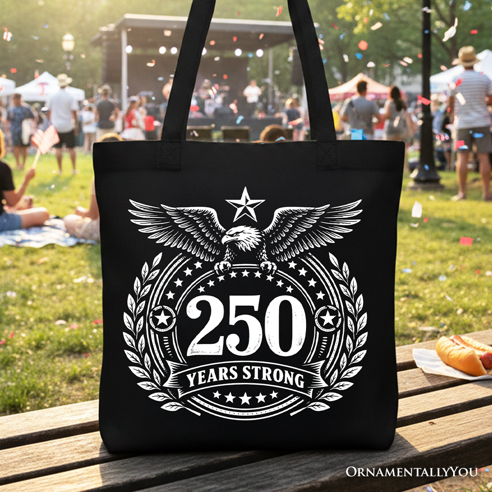 America 250 Years Strong Eagle Tote Bag, 4th of July USA Patriotic 1776–2026 Gift Shopper
