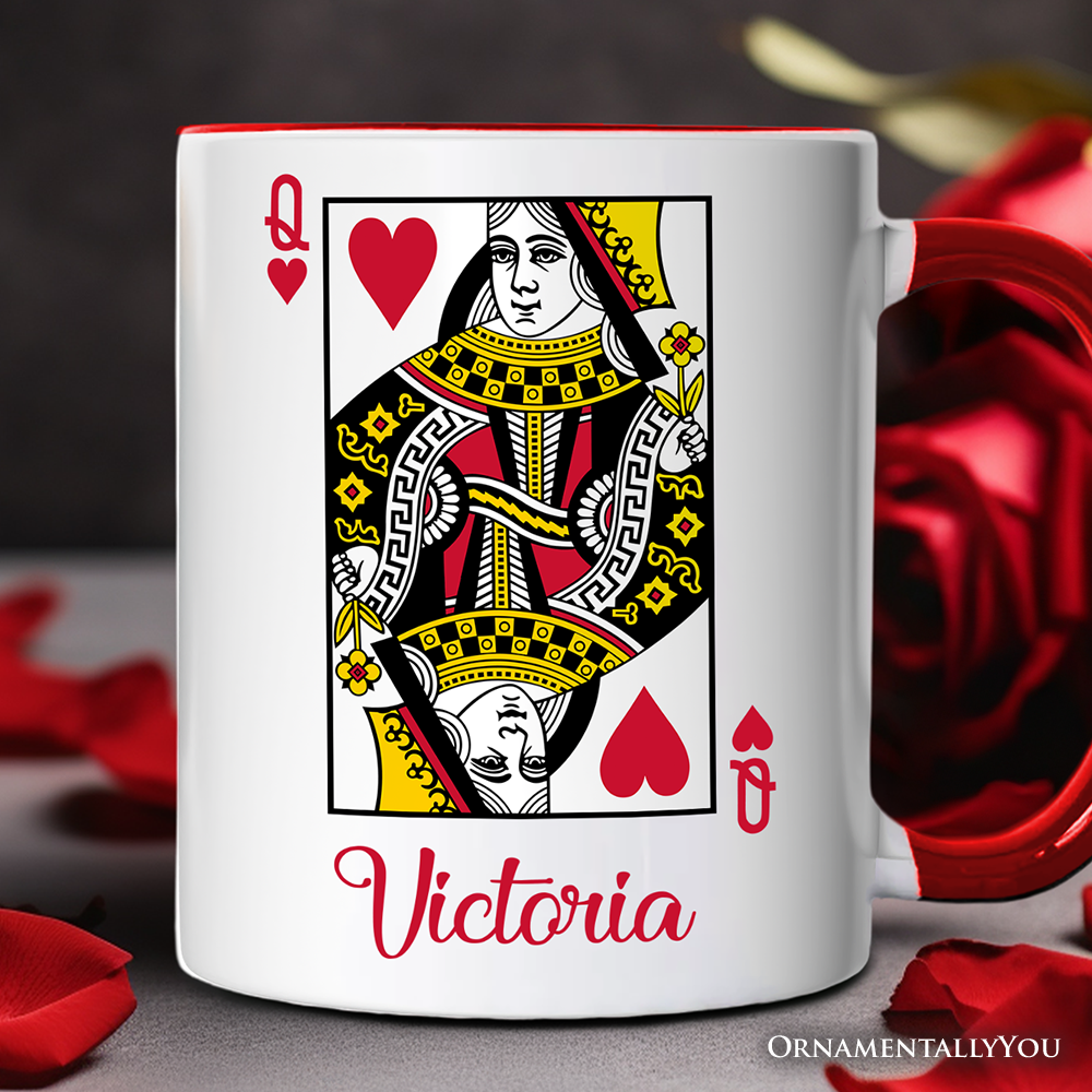 Queen of Hearts Card Personalized Mug, Classic Retro Love Valentine Gift with Custom Name