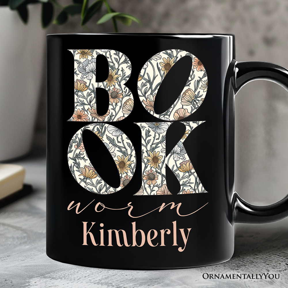 Bookworm Floral Personalized Mug, Boho Wildflower Book Lover Gift with Custom Name