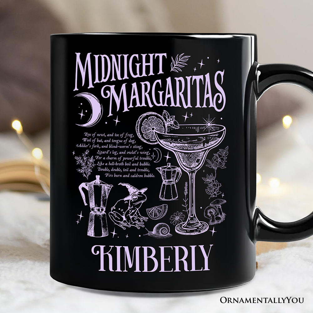 Midnight Margaritas Halloween Personalized Mug, Whimsical Gift for Drinking Witches with Custom Name