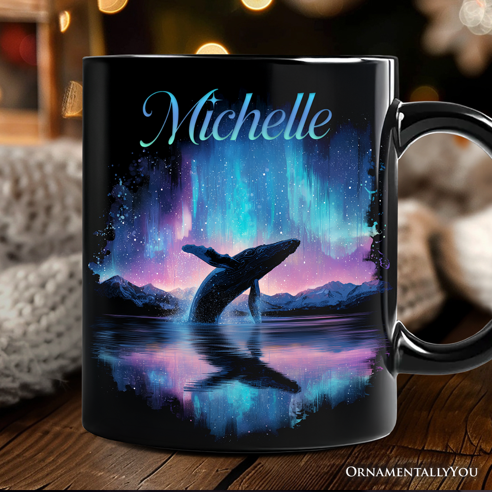 Ocean Aurora Whale Personalized Mug, Northern Lights Wildlife Gift with Custom Name