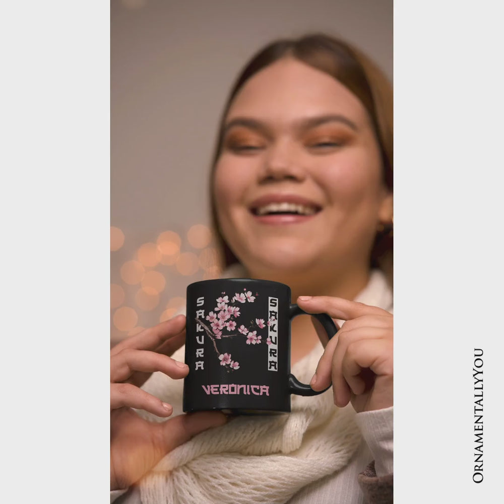 Sakura Cherry Blossom Personalized Mug, Vintage Japanese Spring Floral Gift with Custom Name