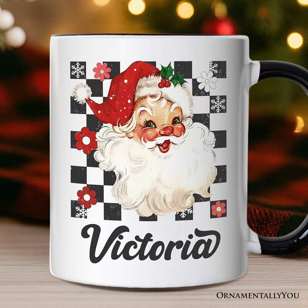 Sip your favorite holiday drink in style with this charming checkered Santa Claus retro mug 🎅☕. Designed with a vintage Christmas pattern, it makes a thoughtful custom gift for friends, family, and holiday party hosts. The personalized name option adds a unique touch, making it perfect for cozy mornings, office coffee breaks, or hot cocoa nights by the fireplace ❄️🎄. A timeless Christmas keepsake, this festive cup blends nostalgic design with everyday functionality, spreading warmth and cheer all season long.