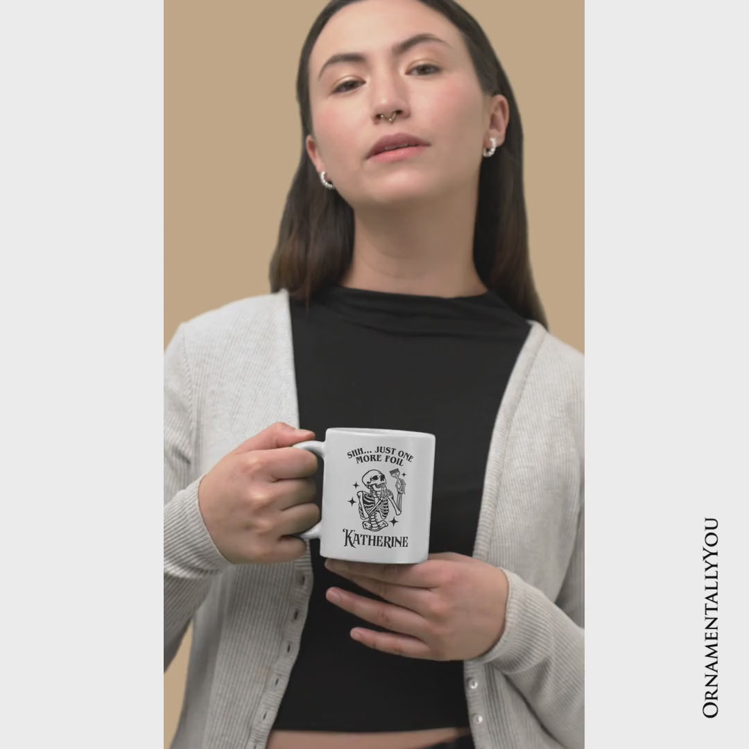 Funny Skeleton Hairstylist Personalized Mug, Shh Just One More Foil Hair Salon Gift with Custom Name