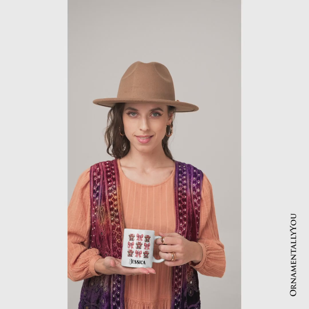 Highland Cow Coquette Bow Valentine Personalized Mug, Cute Hearts Western Gift with Custom Name