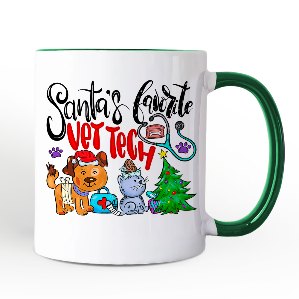 Santaโs Favorite Vet Tech Christmas Personalized Mug, Appreciation Gift for Veterinary Technician with Custom Name