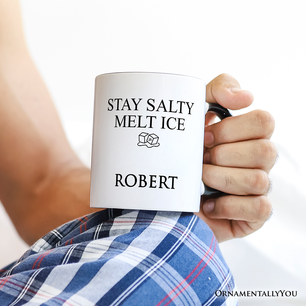 Sip in coastal attitude with this personalized ceramic mug designed for ocean lovers, beachgoers, and salty-soul vibes. Crafted from durable, high-quality ceramic, this custom coffee mug features a playful โstay saltyโ design with melting ice details, making it a standout gift for summer birthdays, beach house dรฉcor, or everyday caffeine rituals. Perfect for hot coffee, iced drinks, or tea, itโs microwave and dishwasher safe for effortless daily use. Whether youโre shopping for a personalized beach mug, a coastal-inspired coffee cup, or a fun custom gift for sea lovers, this mug brings personality, comfort, and seaside charm to every sip ๐๐งโ